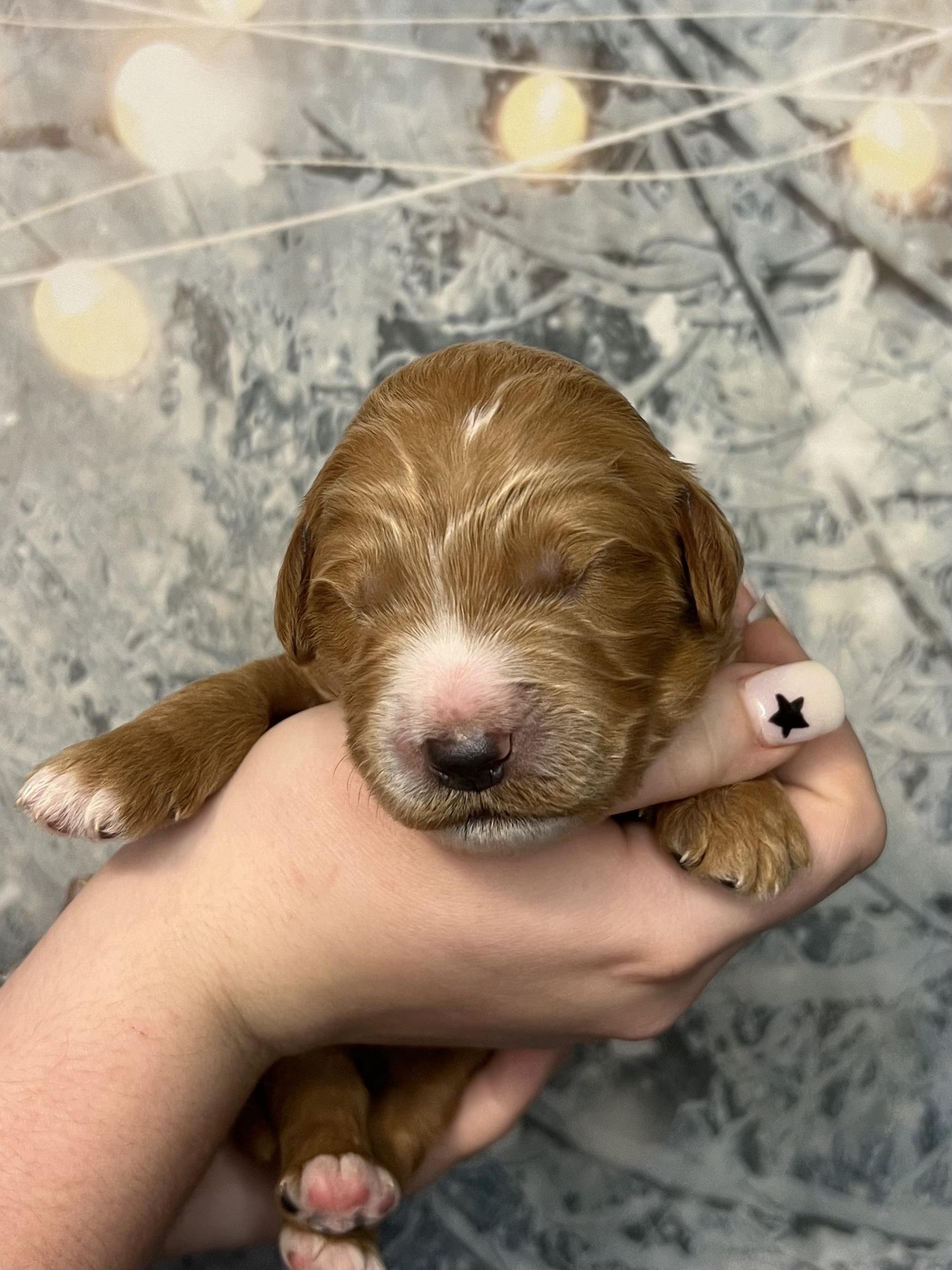 Lollipop is a female Goldendoodle. Carefully selected as a great representative of her breed, Mark decided to make her part of their program. Mark has passed Good Dog’s screening process, which involved a review of their breeding practices, environment, and the mental and physical health of their dogs.