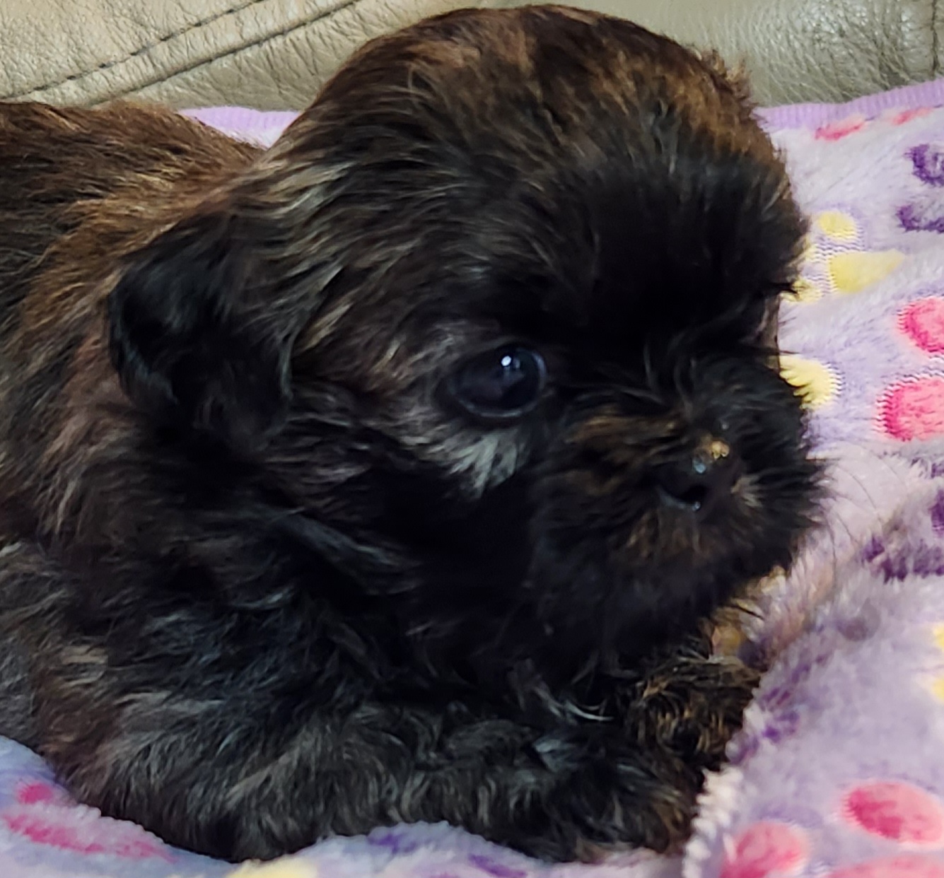 Our Shihpoo puppies include black gold and white, black, brindle, and black and white. Shih Tzu puppies include sable and white, sable, chocolate, black, liver, brindle and white, black and white, liver and white, and brindle. Colors will vary depending on the parent dogs.