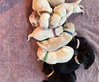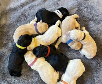 Our puppies include black and yellow. Colors will vary depending on the parent dogs.