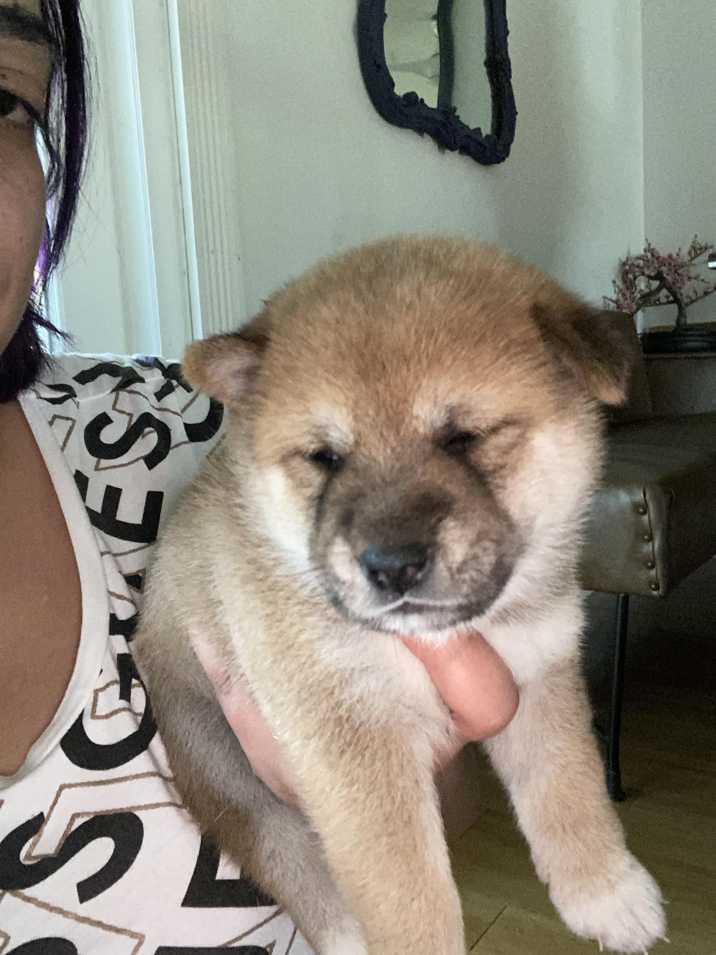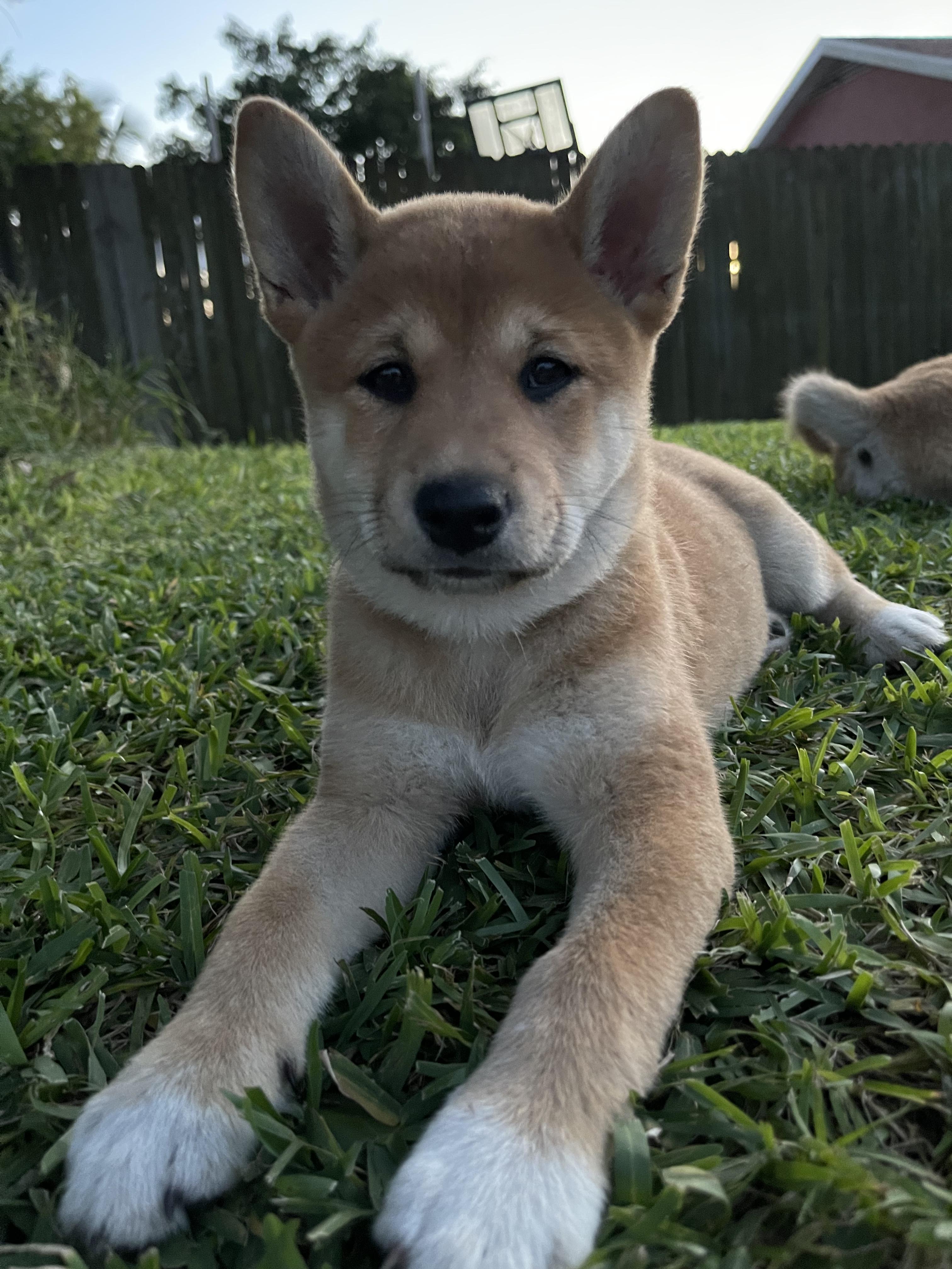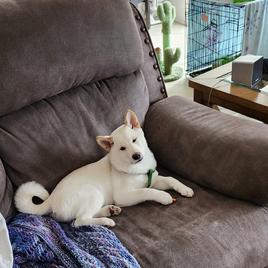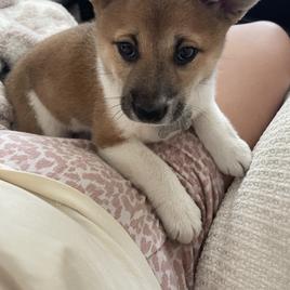 AKC cream shiba Inu male, very active and constantly getting into things he is not supposed to get into. Very well tempered, good with both dogs and people, docile, cuddle bug, loves to have his chest scratched. Very good with kids.