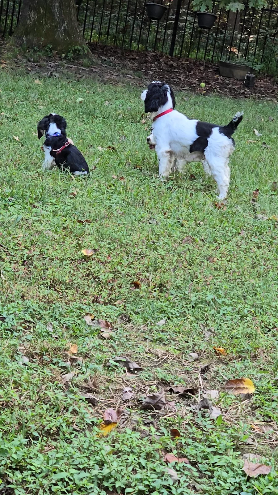 Both Maddie's and Ellie's puppies are playing our backyard...