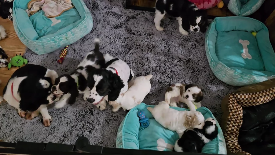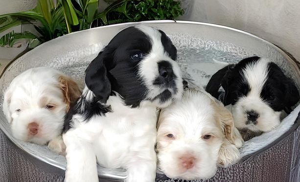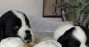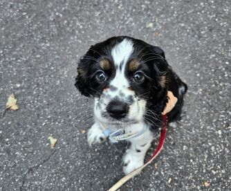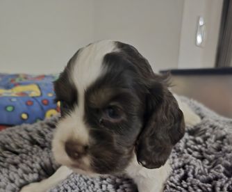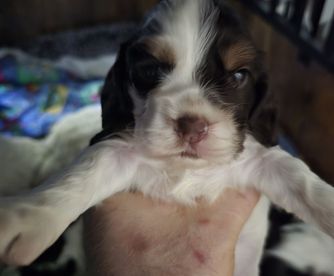 Eddie and his wife were a joy to deal with! They were a pleasure to deal with and very responsive to all of our questions. We watched videos of Cooper and were so excited to go and pick him up. As it turns out, we wound up coming home with a female named, Sunny, too! They have only been home for one day but are doing so well. They were obviously well taken care of and also trained. Both puppies slept all night next to each other and have done well with potty training. They go when taken outside and all day today used their pee pads. Other than wrestling with each other, they are easy. They are affectionate and precious. Our nine year old cocker isn't too sure about them yet, but wags his tail and jumps on our furniture when he wants to get away. We feel blessed to have met Eddie and his wife and to have two more adorable cocker spaniels.