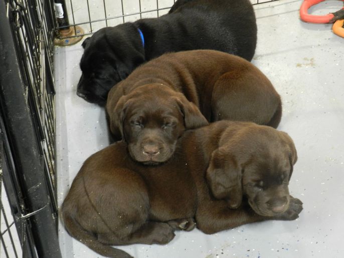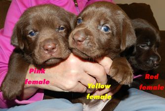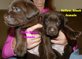 Our puppies include black, chocolate, and yellow. Colors will vary depending on the parent dogs.