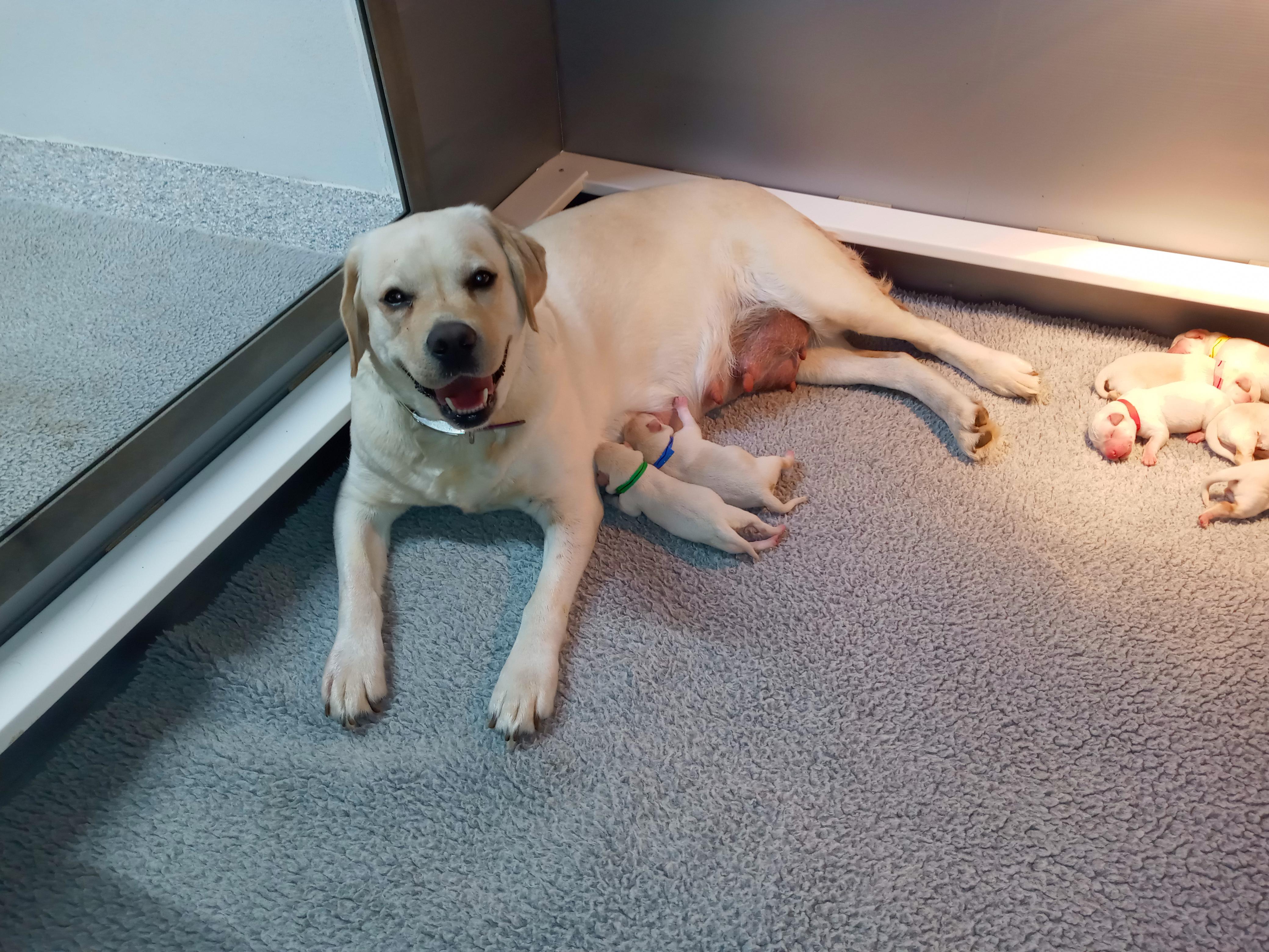 Aurora is a female Labrador Retriever. Carefully selected as a great representative of her breed, Judy decided to make her part of their program. Judy has passed Good Dog’s screening process, which involved a review of their breeding practices, environment, and the mental and physical health of their dogs.