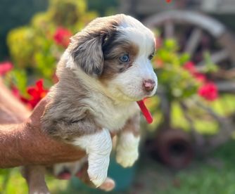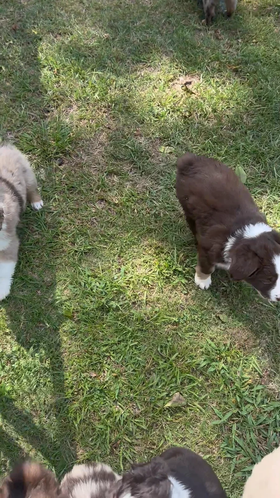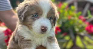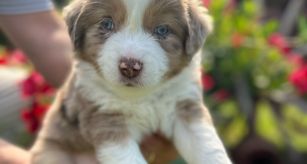 Our puppies include red tri and red merle. Colors will vary depending on the parent dogs.