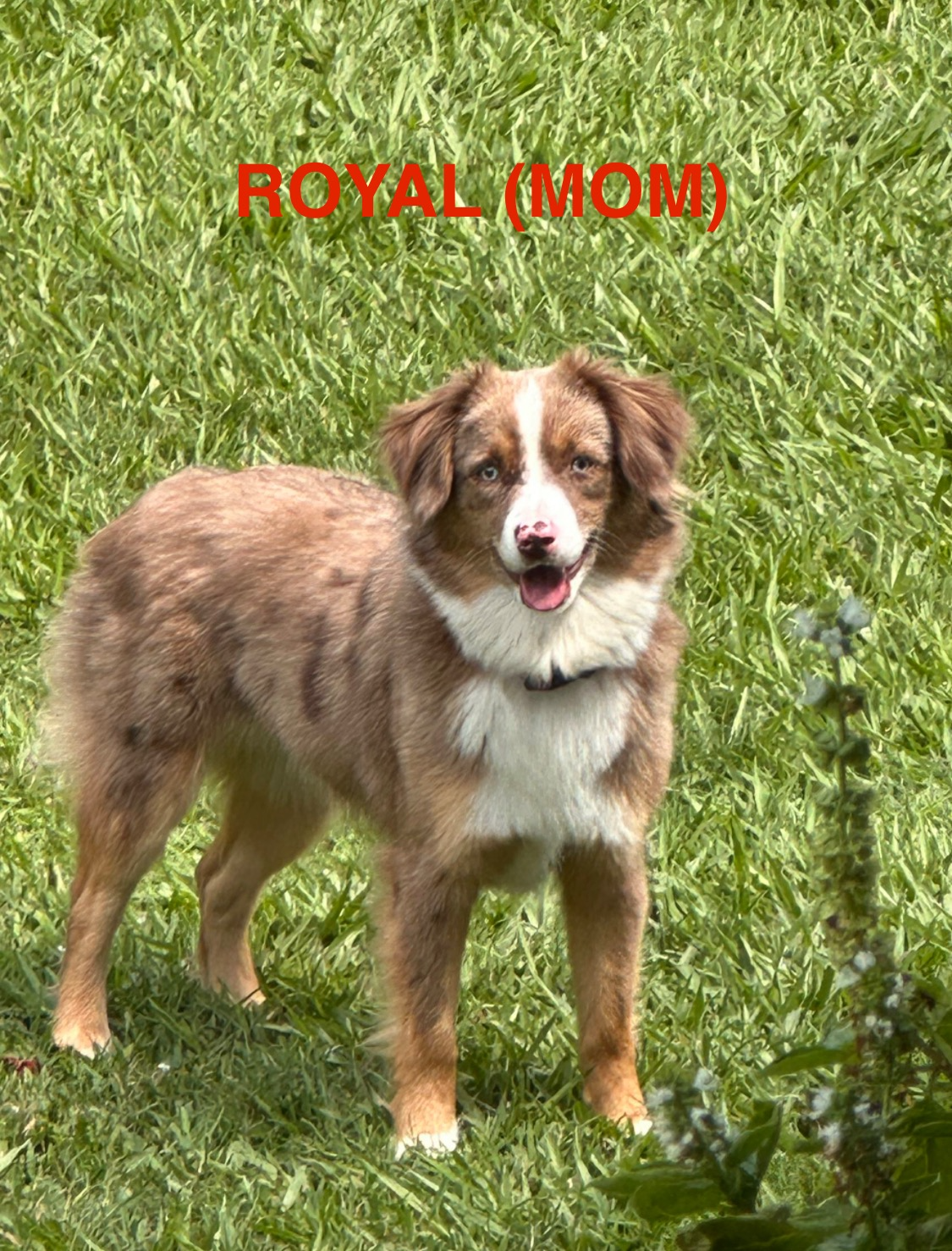 Royal is the queen of our household. She is very loving & affectionate. Royal is a very quick learner & communicates very well. She has been a "mother hen" since day 1 - always looking out for her human & pet family. She is the favorite with all the pets - Caiou (Great Dane), Stella (Aussie / Lab Mix - Rescue), Whiskey (Aussie), & 2 cats. So there was no surprise to her being a great mother to her litter.