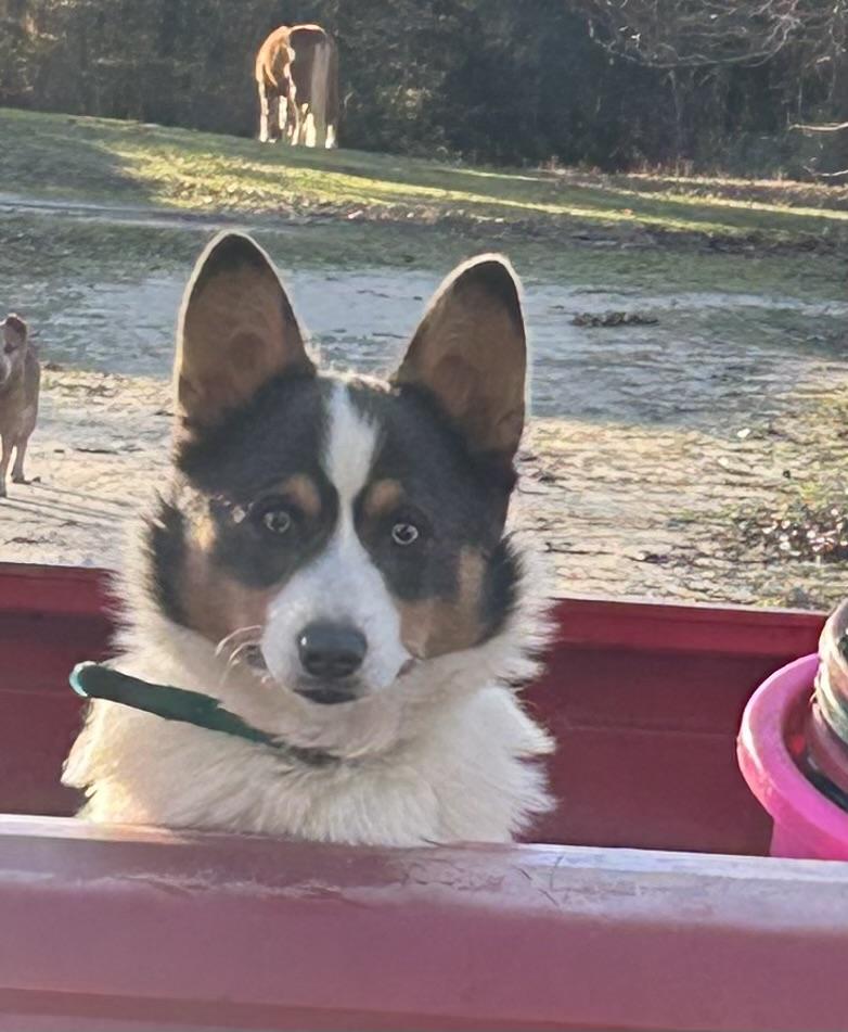 Spur is the newest male on the farm he is akc registered welsh pembroke corgi. He is bigger than all my other corgis he is big boned & is absolutely beautiful he is very sweet & loves people, he gets along with the cats goats, chickens & livestock.