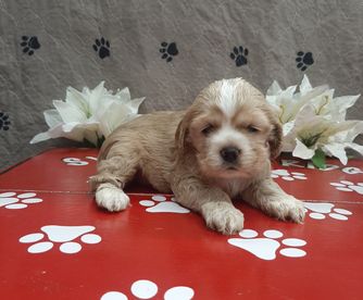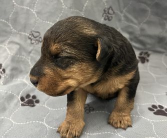Our dogs are AKC registered, and part of our family. They divide their time between our home and their temperature controlled kennel connecting to their one acre yard. Our puppies are well socialized and loved. All puppies come up to date on vaccinations, worming, microchipped, vet. health certificate, and starter pack that includes a toy, 8 lb bag of food, chewies, blanket, and wet food to get you started.
