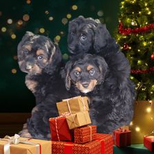 Our Cavapoo puppies include red and black and tan. Poodle puppies include apricot, black, red, parti, and phantom. Colors will vary depending on the parent dogs.