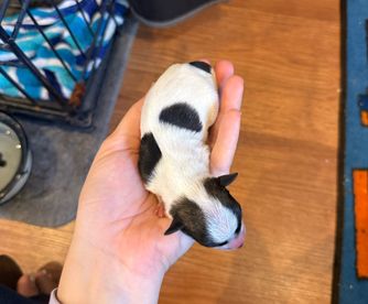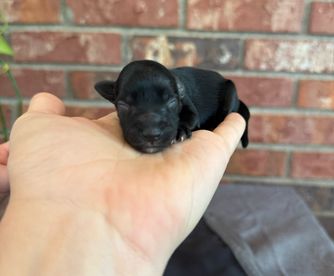 “They’re hypo-allergenic (no shedding hair, yay!), they have their tails docked, dewclaws removed, and are examined by our local vet. Vaccinated, and de-wormed! Your reservation fee (deposit) will go toward the final cost of your puppy! This just shows us you are serious about your new little friend. 💕.”