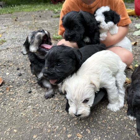 Our sweet pups are raised in our home with our family. They are not just another dog, but truly a member of our family while they are with us! We believe in raising well socialized, kid-friendly pets. Our own children love and snuggly these pups from day one! We strive to keep our prices affordable for other families to experience the same love we have with our schnauzers.