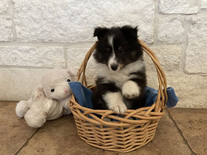 Our puppies include sable and white and black white and tan. Colors will vary depending on the parent dogs.