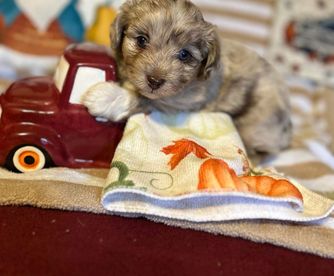 “Price includes health guarantee, Registration, Puppy Package that includes Canvas Tote Bag, Harness/Collar, Toy, Blanket and Bag of Puppy Food. Also included are 2 Dewormings as well as first round of vaccines. Our deposit is $300 and is Non-Refundable unless something happens to the puppy while in our care.”