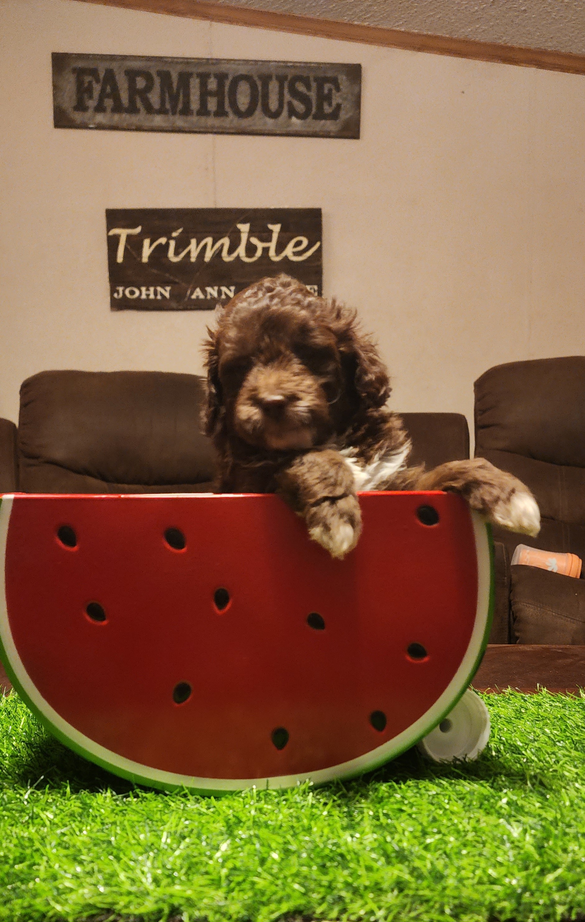 Our Miniature Australian Shepherd puppies include blue merle, black tri, and red merle. Aussiedoodle puppies include blue merle, red merle, black phantom, black and white, and red phantom. Toy Australian Shepherd puppies are red merle. Colors will vary depending on the parent dogs.