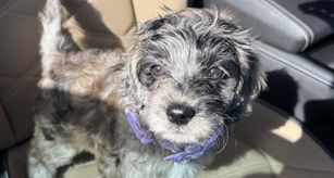 Mina went to the vet today for more shots. She now weights 5.7 lbs and is a happy , healthy pup. She loves everyone but our son is her favorite person. She plays and eats well. She is a wonderful bundle of energy.