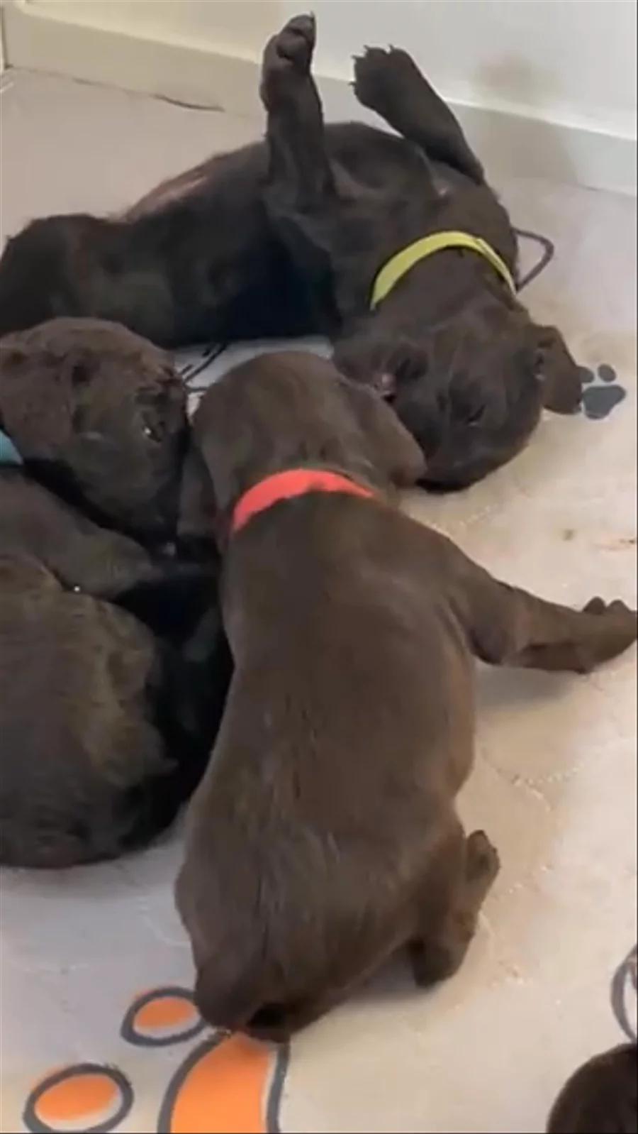They are growing up! They all moved to their puppy Play Pen today. Also transitioning to soft kibble and less mom!
