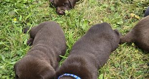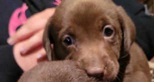Our puppies are chocolate. Colors will vary depending on the parent dogs.