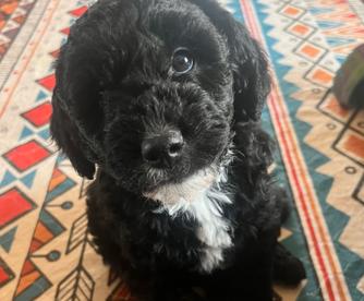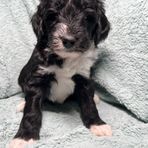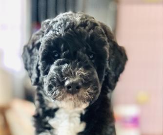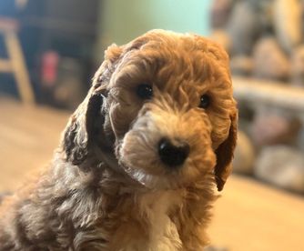 Kaya is an amazing dog! She is smart, loyal, athletic, sensitive, and is the perfect dog in so many ways. She spends most of her time with us as we work outside on our 80-acre equestrian farm. She is not enclosed in any type of fence ever and yet never leaves her trained area around our immediate home unless approved by us. She has perfect recall even when she comes along on trail rides with us, no matter what deer or other animals we come across. Kaya has been extremely socialized with kids as we have two and she also is the resident greeter for all of our many horseback riding students that visit us regularly. She is beloved by all who meet her and requests for her offspring are common. Kaya was easy to train as she has a natural desire to please and is very intelligent. She gets a long and wavy coat and sheds very minimally as a first generation.