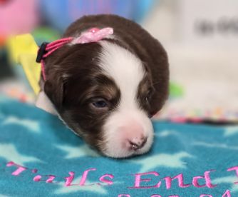 I'm Sharron R., the breeder behind Tails End Ranch located in Middleburg, FL. Our dogs are genetically tested to assure we are producing healthy puppies. Each puppy is handled and loved on several times a day. They will be exposed to the cats, and noises like music, power tools and the riding lawn mower. They start learning potty training with a doggie door at 4 weeks old.