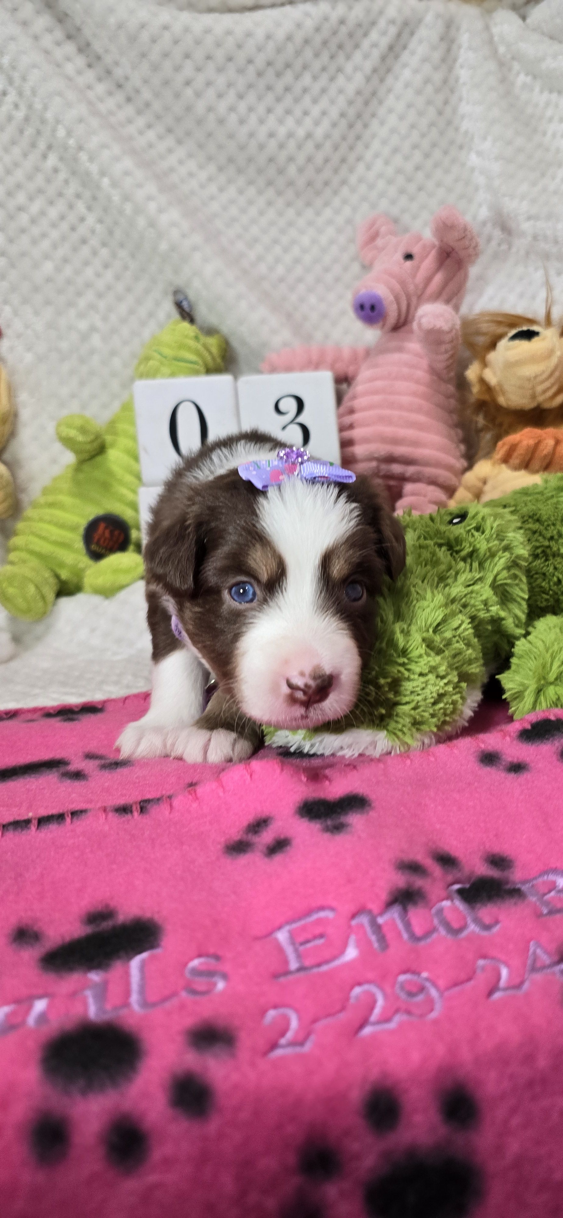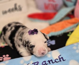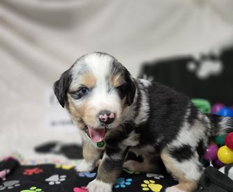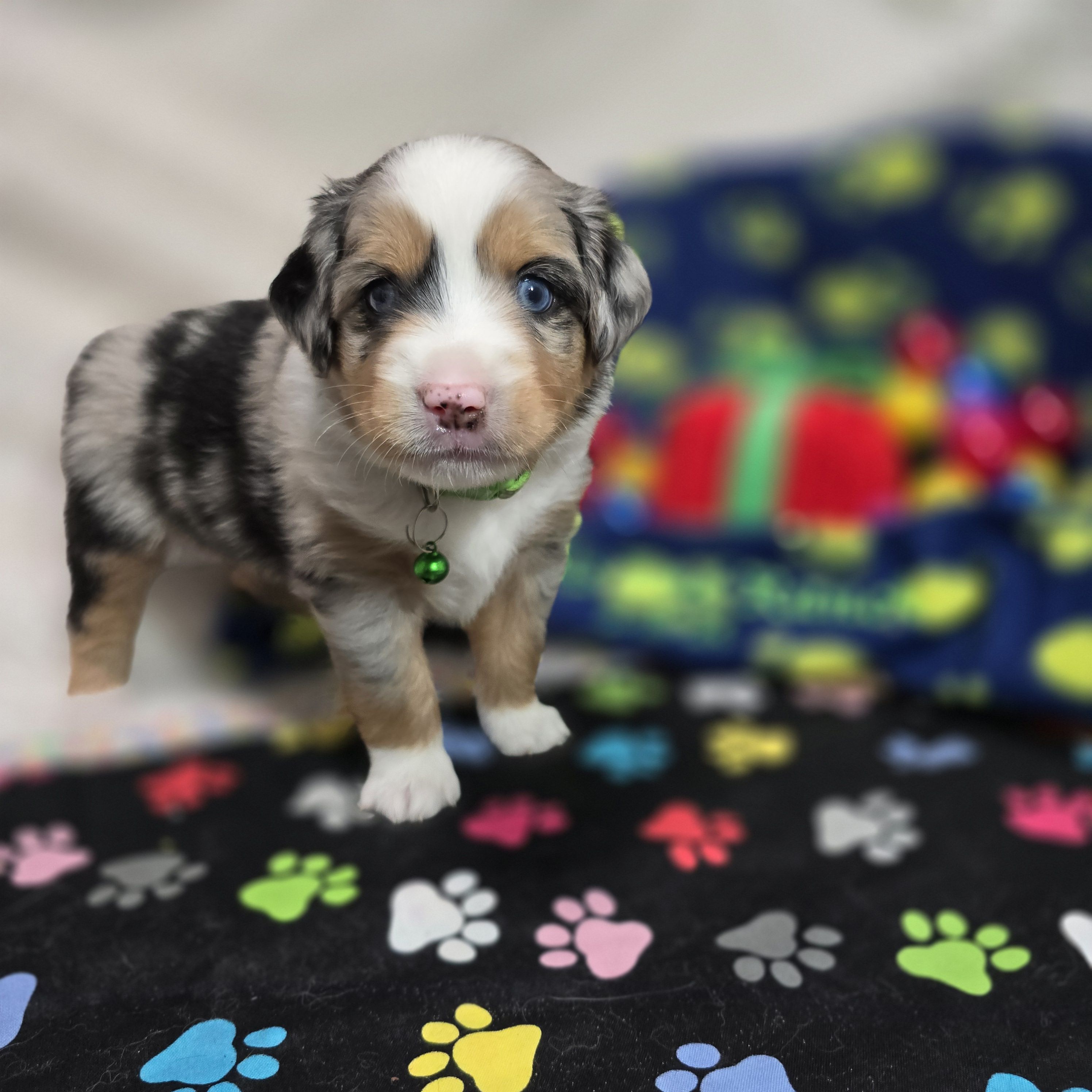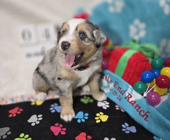 Our puppies include blue merle, red merle, red, and black. Colors will vary depending on the parent dogs.