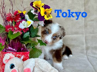 Adira is on the smaller side for a standard Aussie. She is loving and affectionate. Her favorite place to snuggle is in my bed nestled between my husband and myself. She loves a good plushy and uses them to show us how happy she is that we've returned home. She is a vocal girl, she has a tendency to murmur when she is pleased.