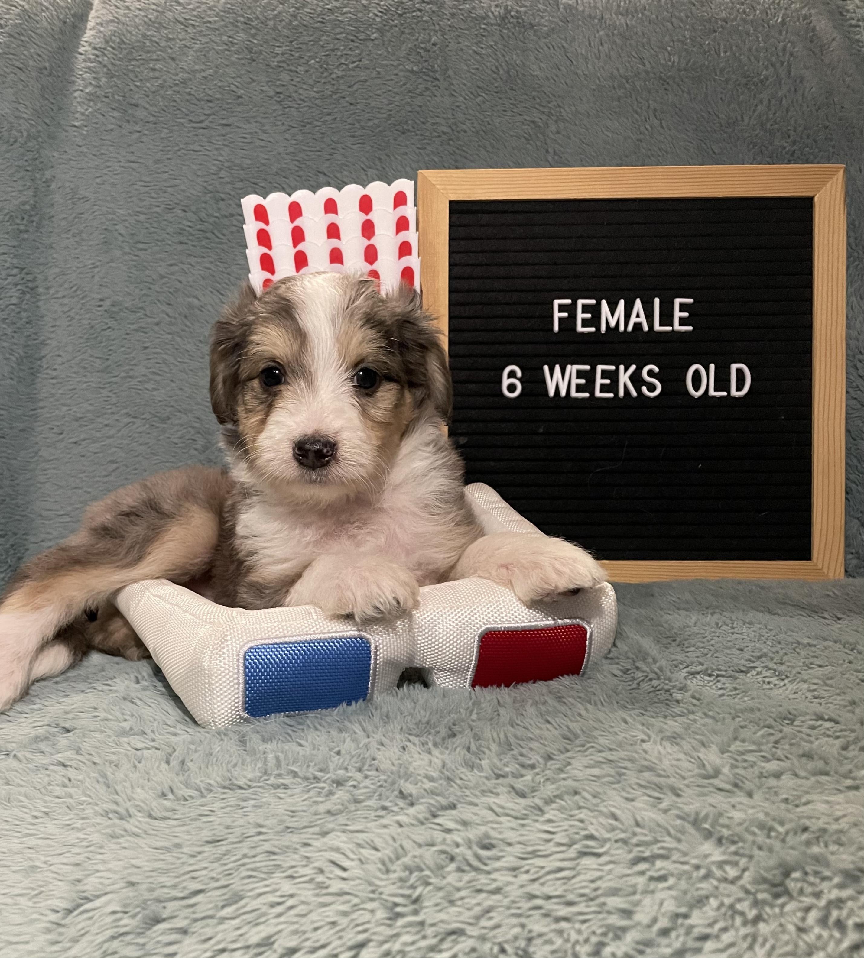 Aussiedoodle puppies are mini size. Sizes will vary depending on the parent dogs.