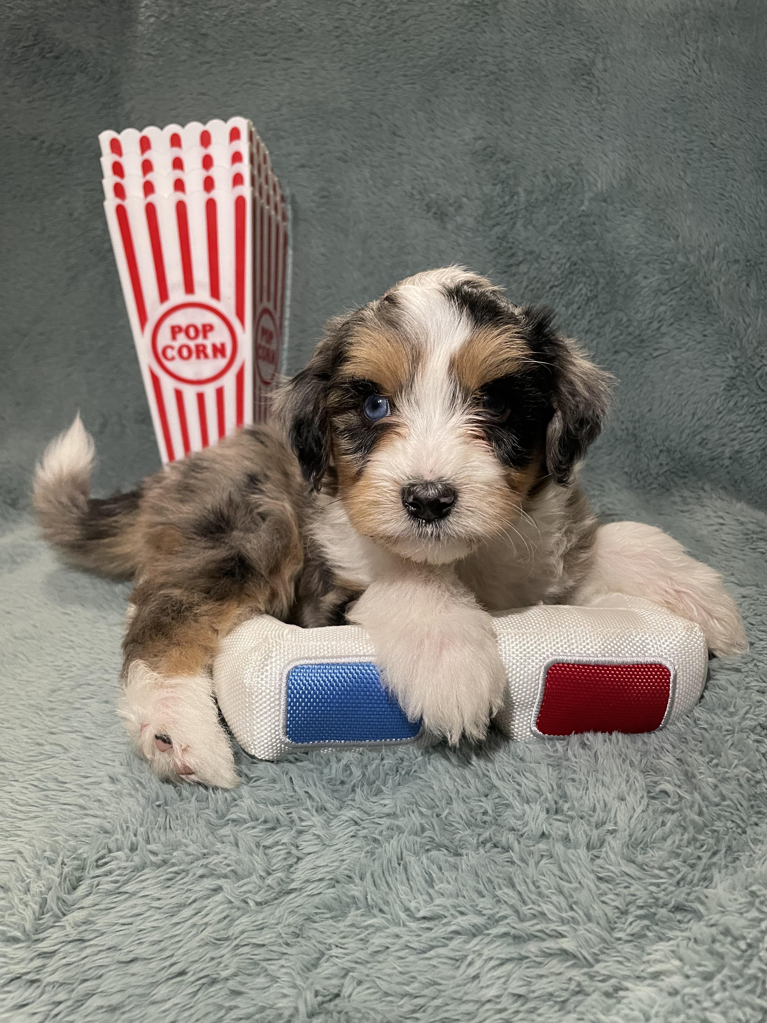 “My chocolate bernedoodle puppies are $3700 and my traditional tri pups are $3500. They are F1b mini/medium pups. They will be approx 30-40 lbs full grown! The pups will go home with 3 rounds of deworming, first set of vaccinations, full vet check up, food, toy, a blanket and a 1 year genetic health guarantee! We raise our pups in our home with ENS, manding from puppy culture, lots of socialization, early potty and kennel training and confidence building!