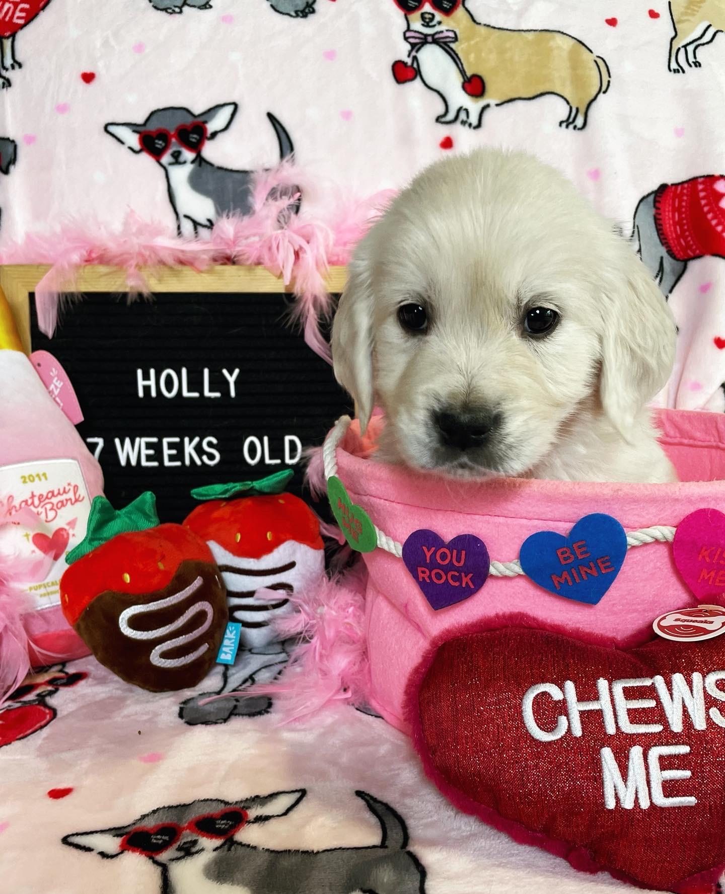Holley is a female Golden Retriever. Carefully selected as a great representative of her breed, Skyeler decided to make her part of their program. Skyeler has passed Good Dog’s screening process, which involved a review of their breeding practices, environment, and the mental and physical health of their dogs.