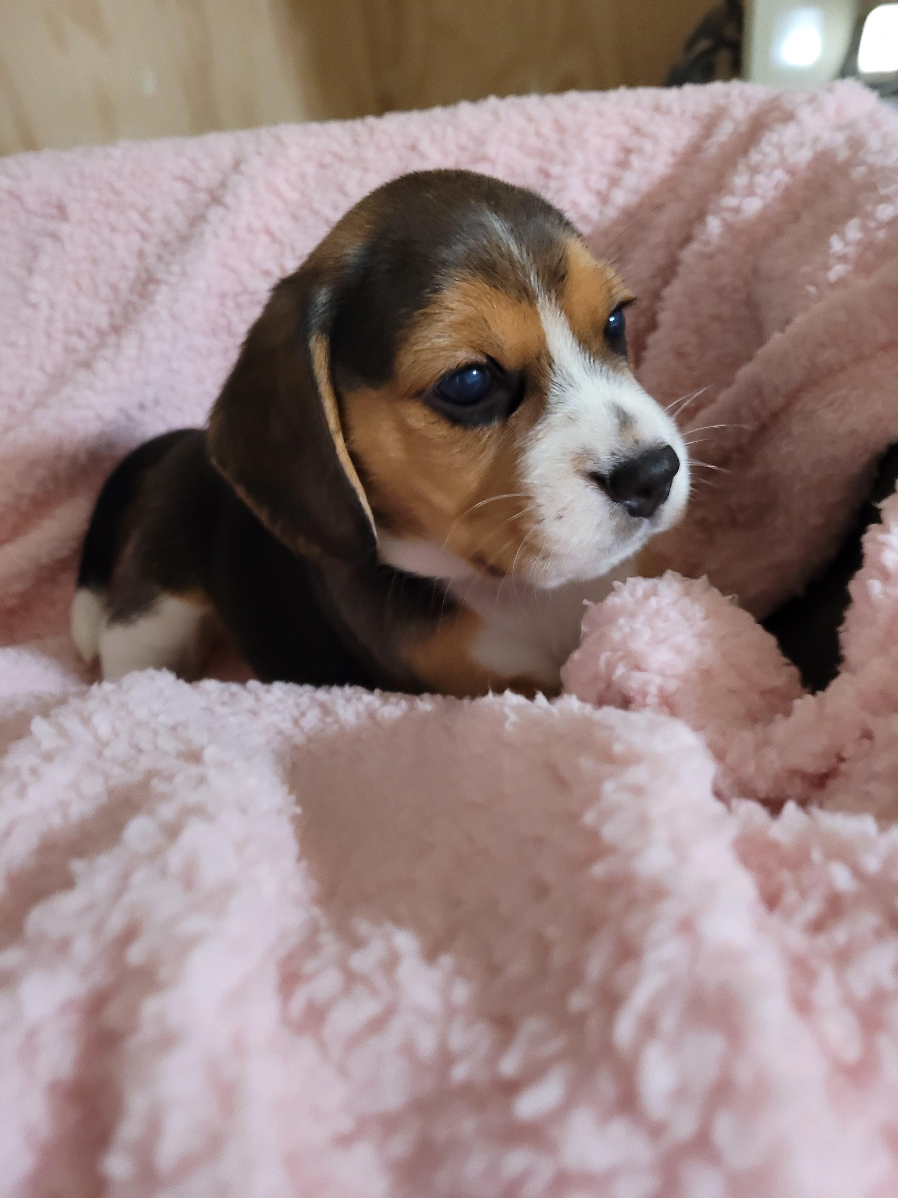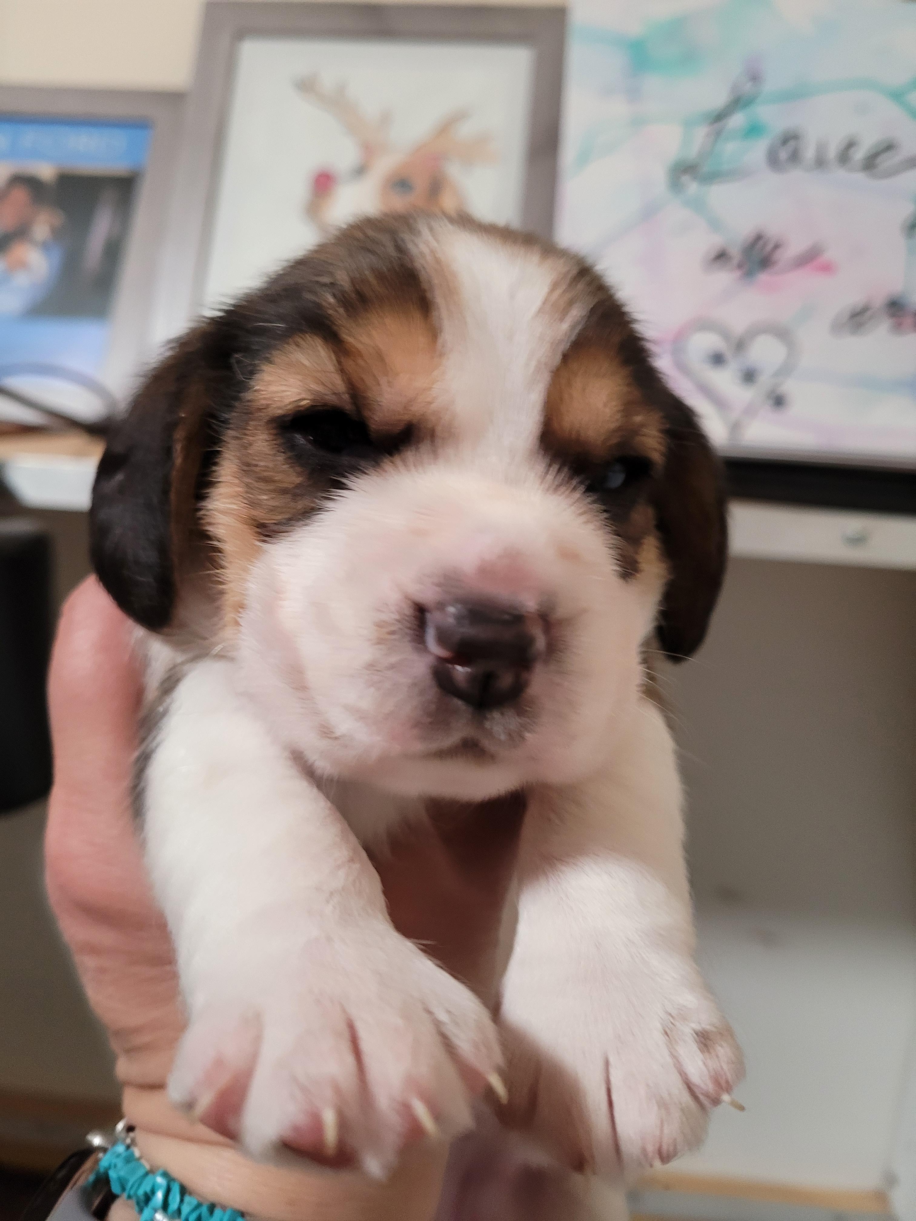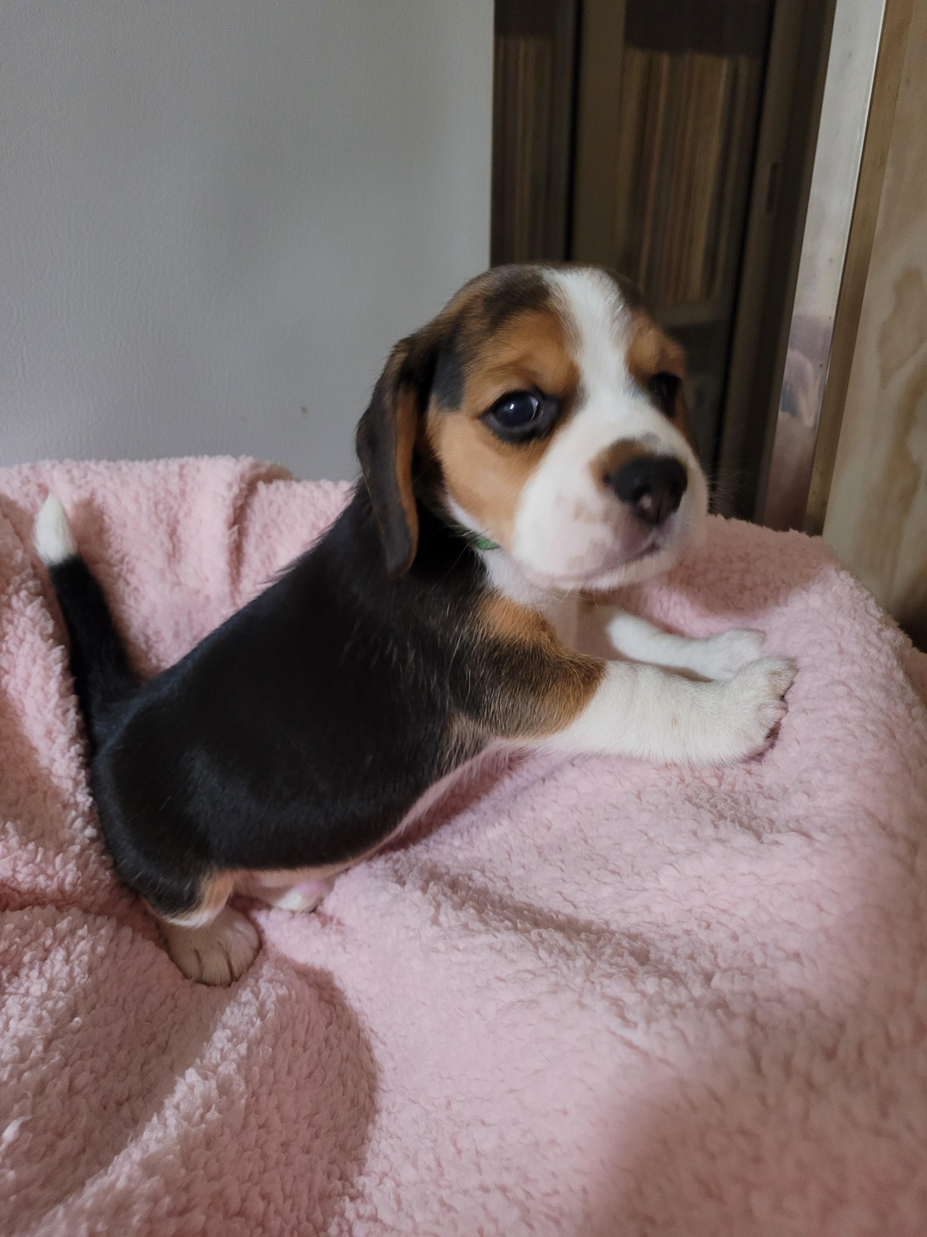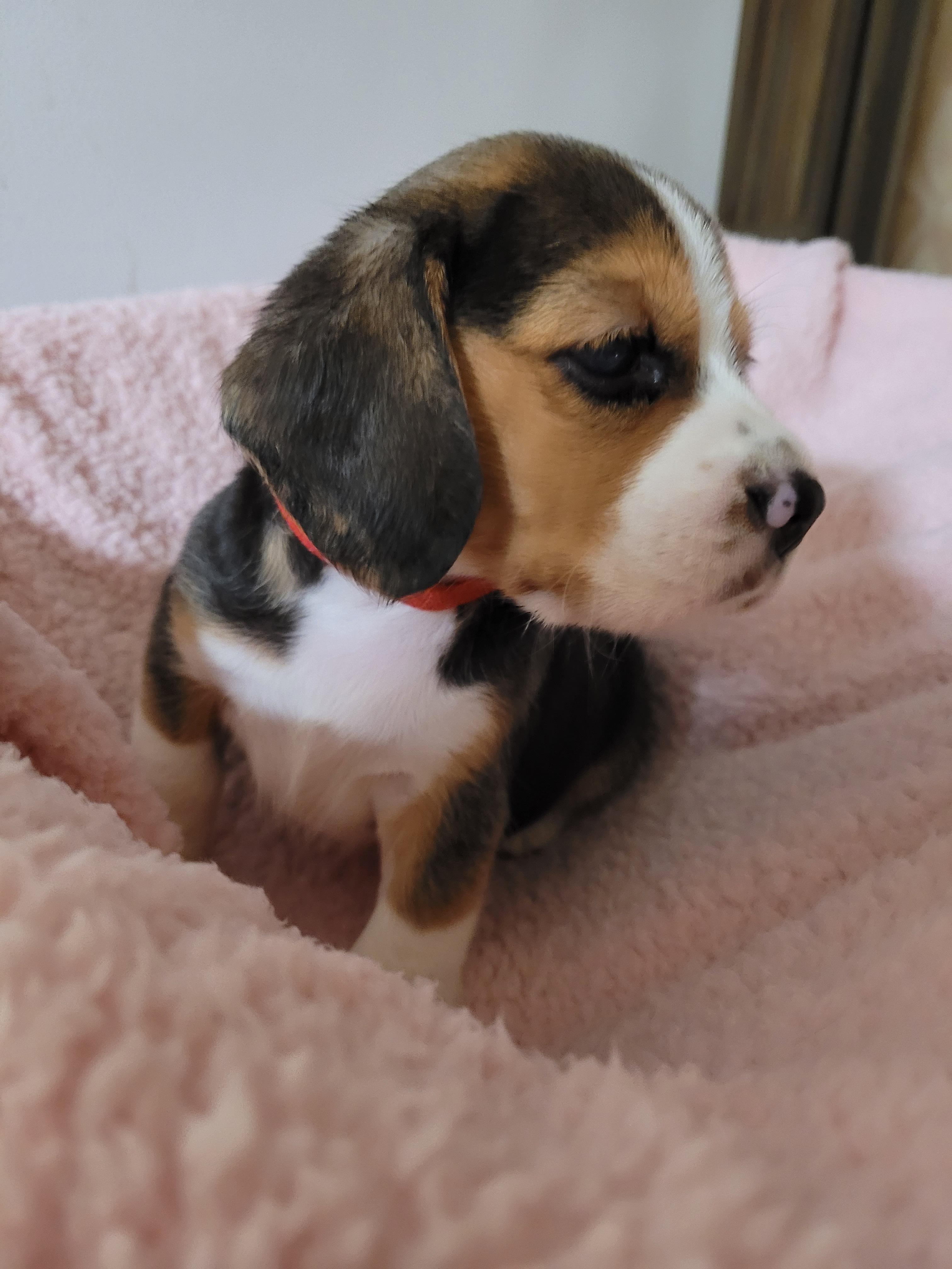 Kiwi is a female Beagle. Carefully selected as a great representative of her breed, Tamara decided to make her part of their program. Tamara has passed Good Dog’s screening process, which involved a review of their breeding practices, environment, and the mental and physical health of their dogs.