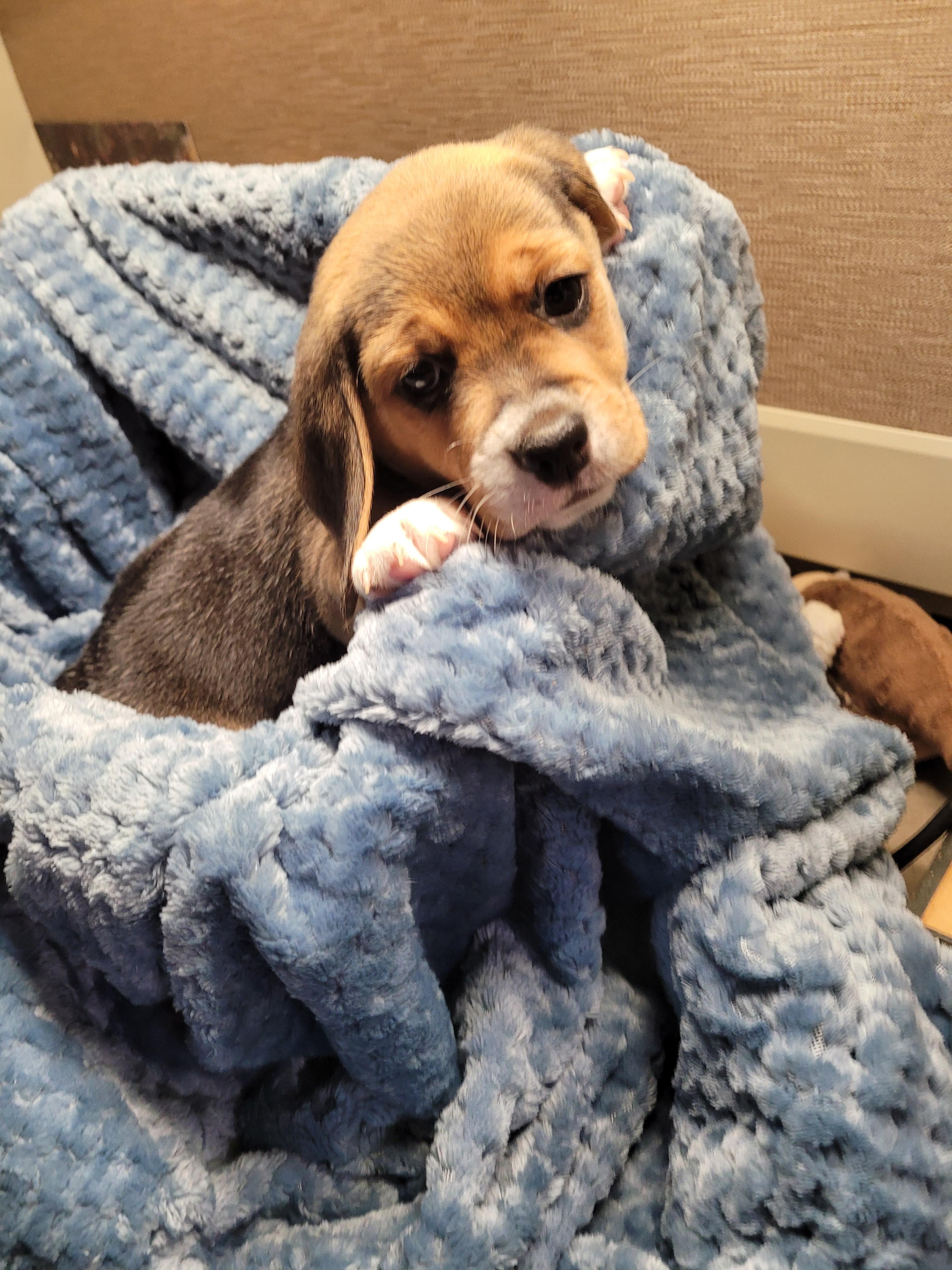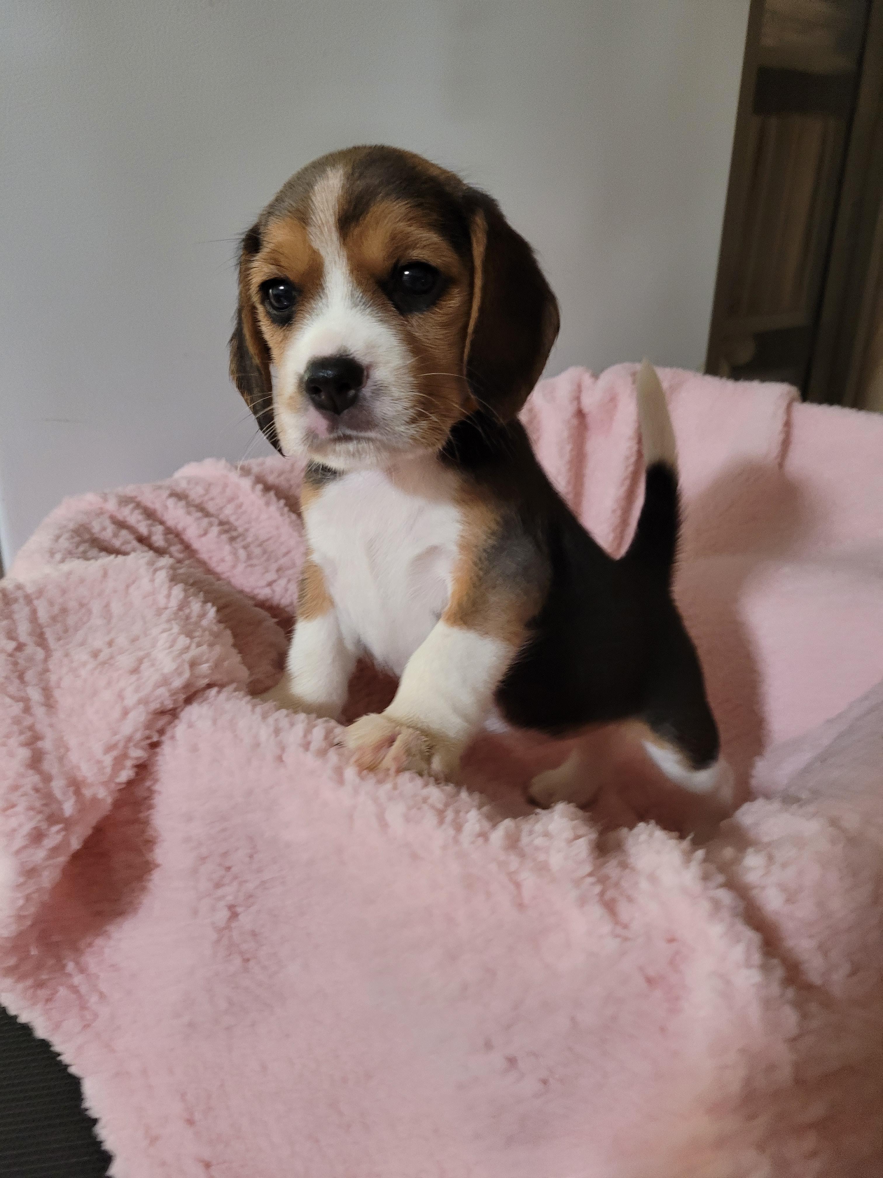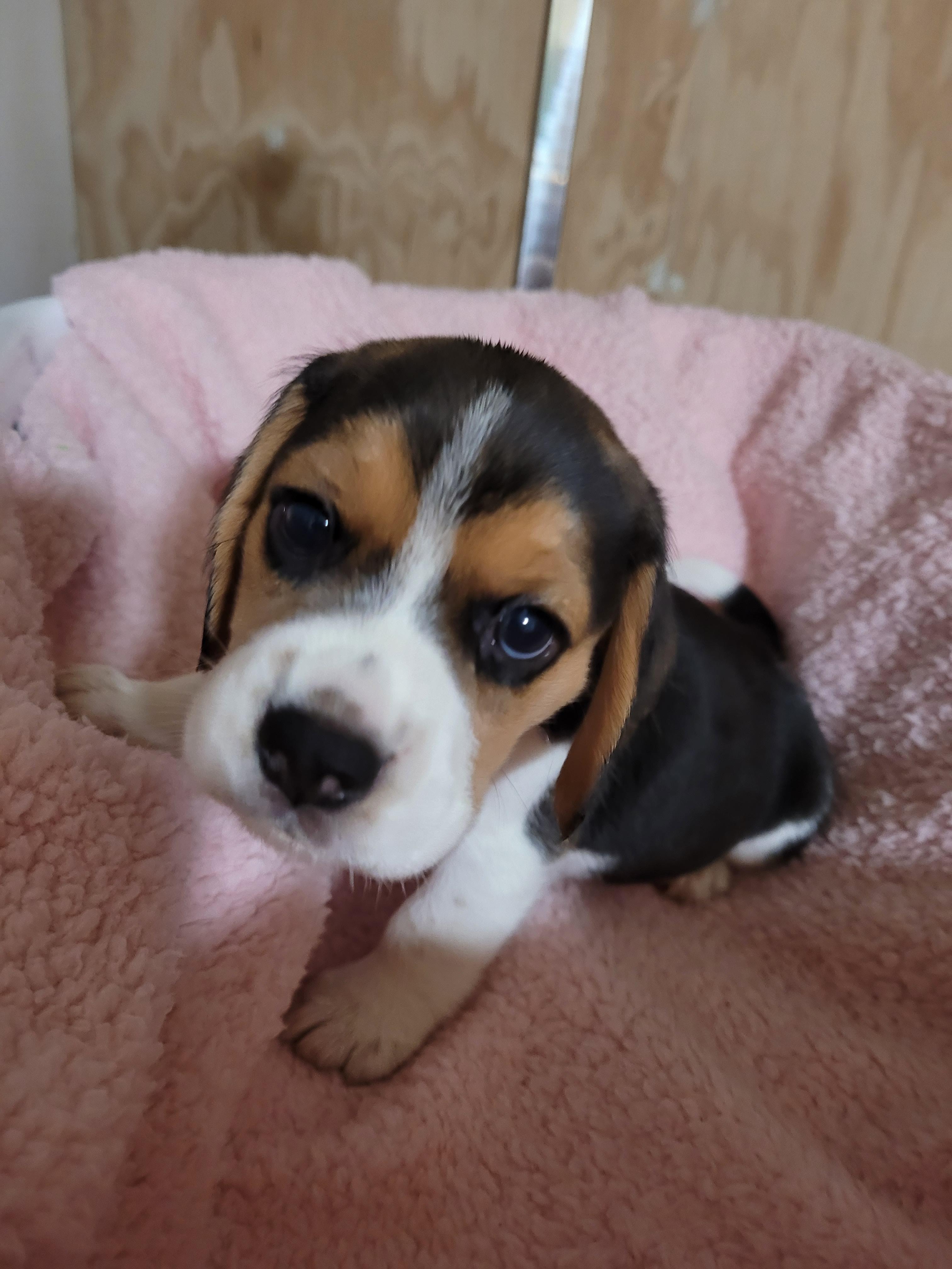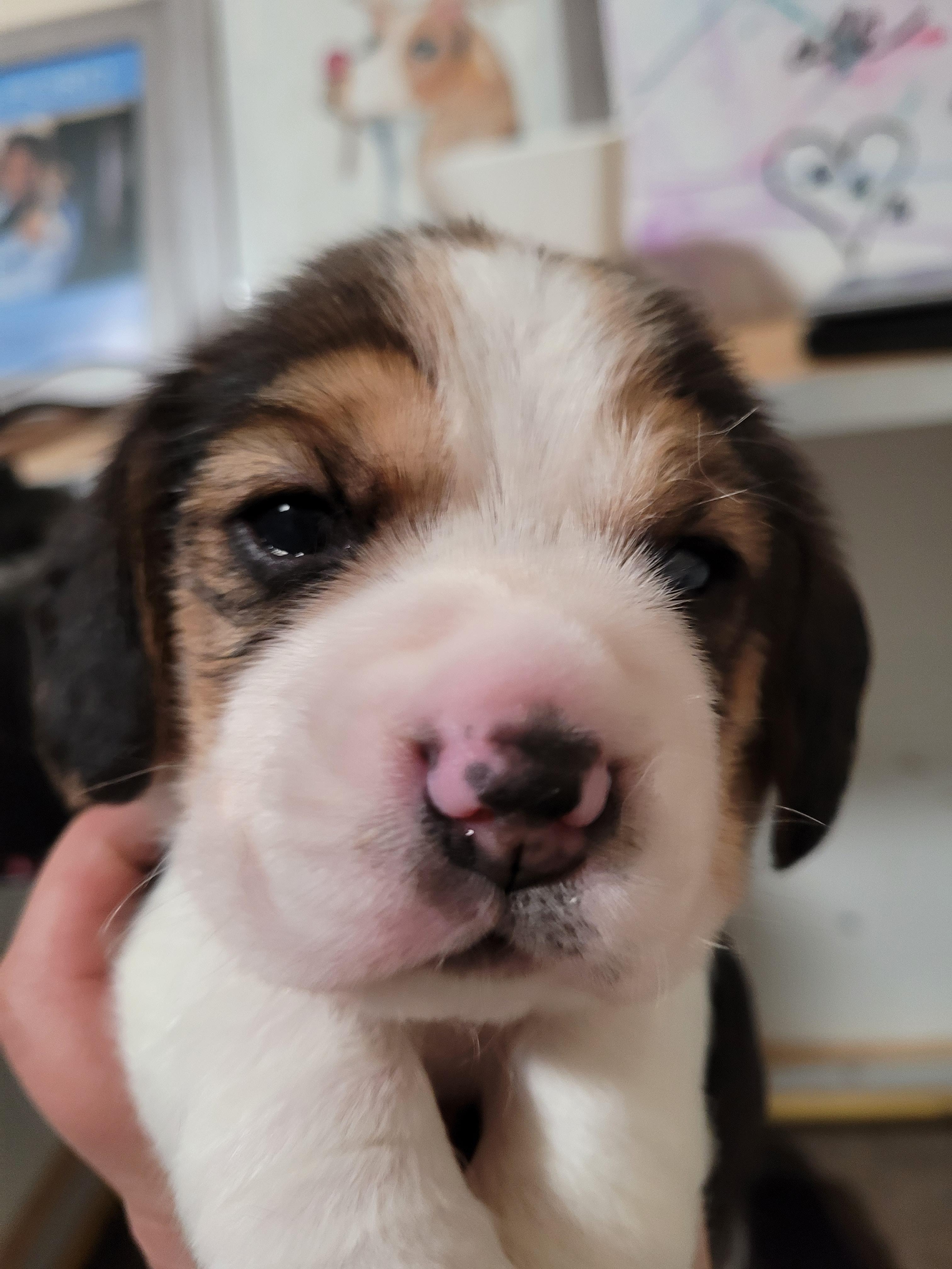 Kiwi is a female Beagle. Carefully selected as a great representative of her breed, Tamara decided to make her part of their program. Tamara has passed Good Dog’s screening process, which involved a review of their breeding practices, environment, and the mental and physical health of their dogs.