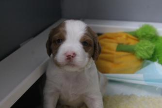 Our puppies include orange and white and liver and white. Colors will vary depending on the parent dogs.