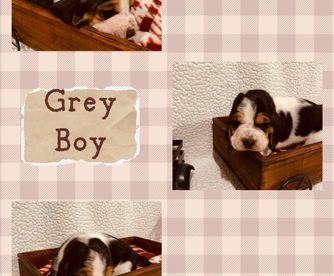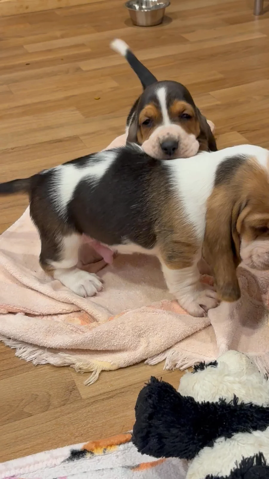 Updates from 5 -7 weeks old. From playin hard and getting loves from me ☺️, to taking their first vet trip in a wagon and to being with their new moms and dads! They have been an absolute joy to raise and full of basset charm! 🐾❤️🐶