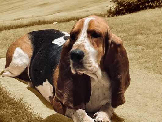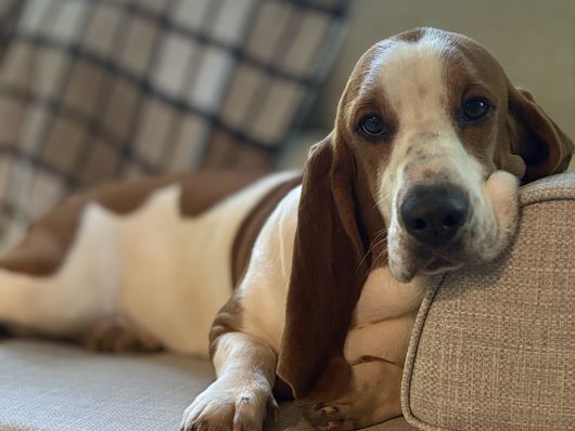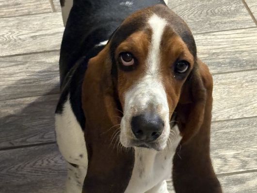 Lewis is a well characterized, American basset hound and he is beautiful!! He is AKC registered with a very lengthy pedigree documented. He is broad and a big ol’ hoss with a gentle, loving demeanor! He is well socialized and great with other dogs and cats. Loves to talk and will tell you all about it on introductions but then loves up to you after he lets out everything he has to say. Nose and ears to the ground ALWAYS.