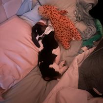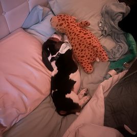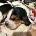 Miss Charlie is our tri-colored lady! She’s a very affectionate companion, she’ll give you hugs and have lots of conversations with you🤭🤭. She has been a wonderful mom and hope all the babies have her some of her unique character❤️ Aside from her CKC registration with documented pedigree, she has also had her hips evaluated.