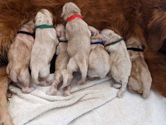 Our puppies are golden. Colors will vary depending on the parent dogs.
