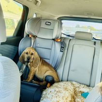 Scarlett is my lap dog. She thinks she is a toy poodle and lays on top of me because personal space is not part of her vocabulary lol. She loves her human more than anything. Emmett is just a big old goofy clumsy mess of love.