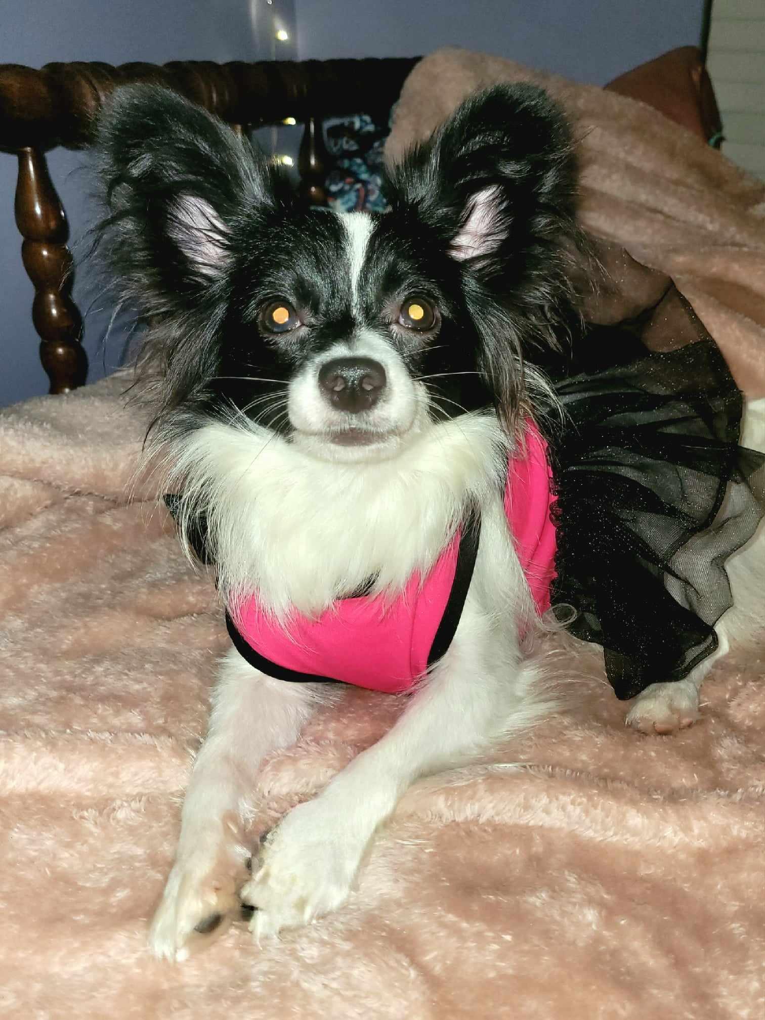 Minnie is a female Papillon. Carefully selected as a great representative of her breed, Tammy decided to make her part of their program. Tammy has passed Good Dog’s screening process, which involved a review of their breeding practices, environment, and the mental and physical health of their dogs.
