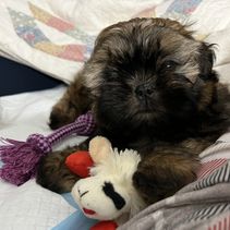 When I began my search for our new family member it was important for us to have someone who did genetic breed testing. I wanted a specific color of Shih Tzu. I came across Tammy’s profile on good dog. It stood out to me that everything was right there. Information about what testing had been done on her dogs, health guarantee, AKC registration, lots of photos. I seen the picture of my boy and messaged her asking questions. Tammy was always very responsive. When she sent me updated photos. I knew he was the one I wanted. Tammy made the process so easy. I was new to good dog and also having a puppy. All of my fur babies have been rescues. So I asked a million questions. Tammy did not hesitate at all answering them. Down to grooming, what products she used. Food, even the special Choco nose water bottles that the puppies were trained to use. Tammy was absolutely the most friendliest person, and truly cares about her dogs and puppies. She gave amazing pupdates with photos and videos. My puppy was so well socialized and loving. A lot goes into breeding a wonderful dog. Tammy and her family go above and beyond to make sure these puppies are ready for their new homes. I will be forever grateful to them for the love and care they gave to my sweet boy.