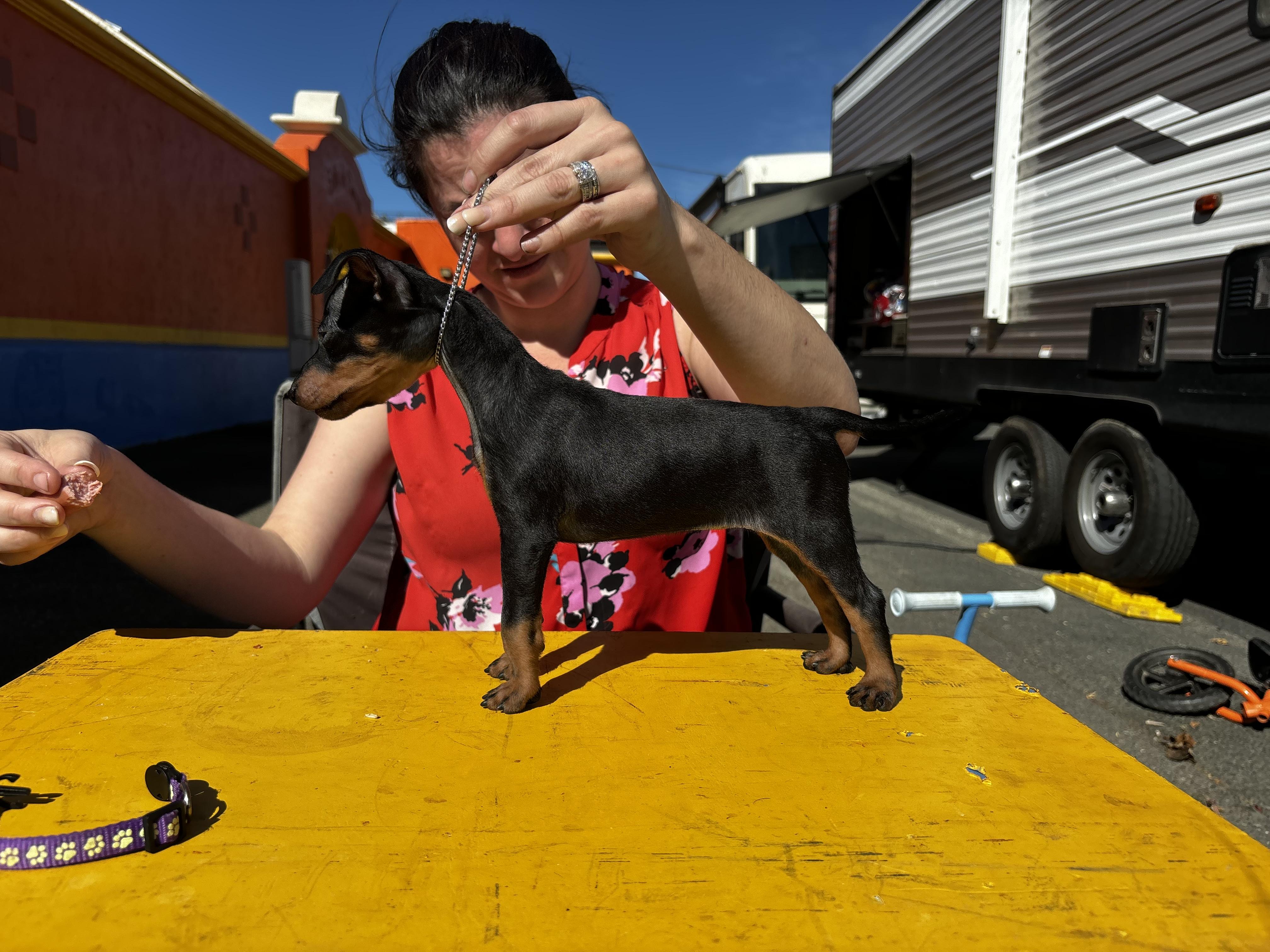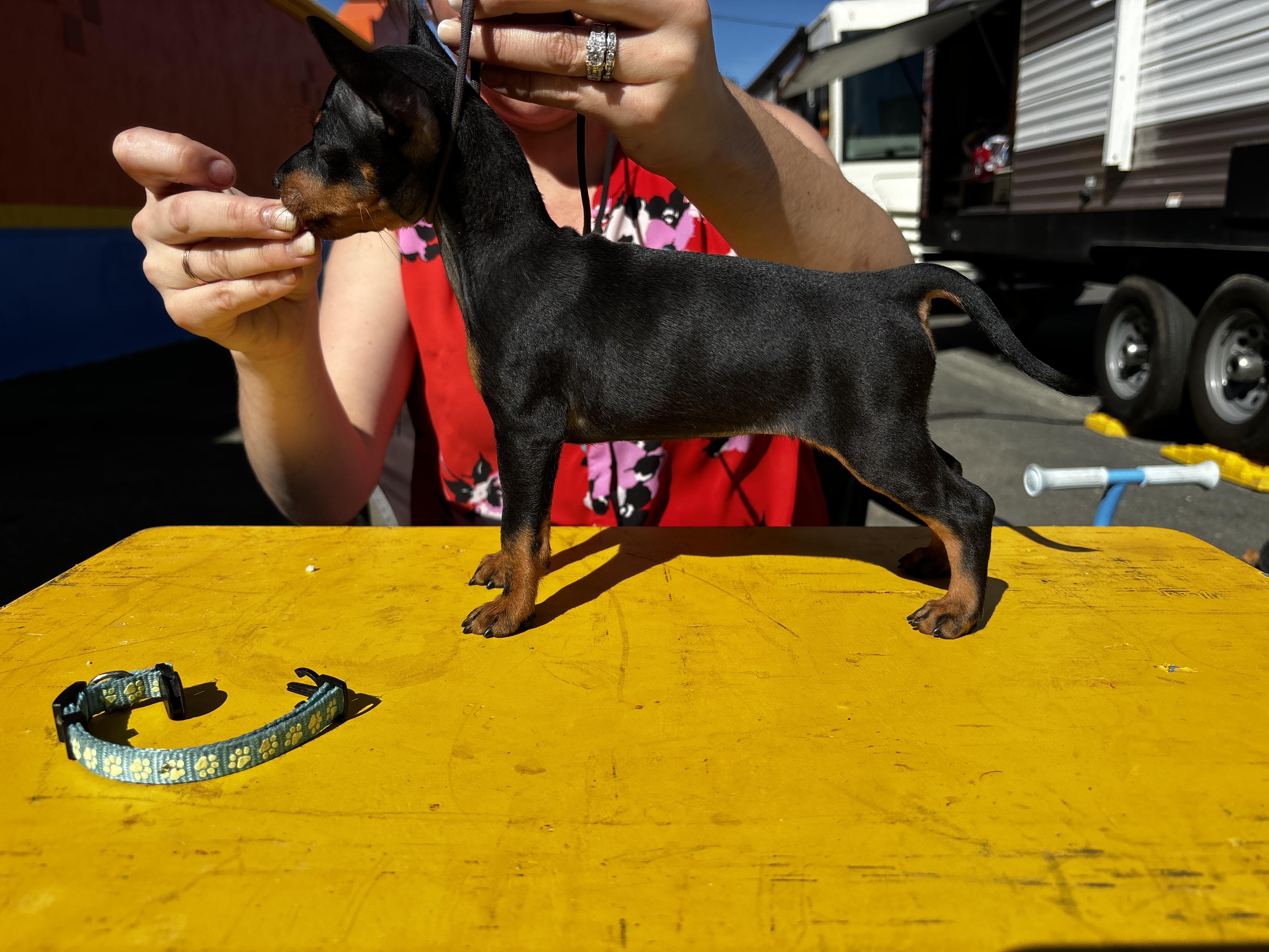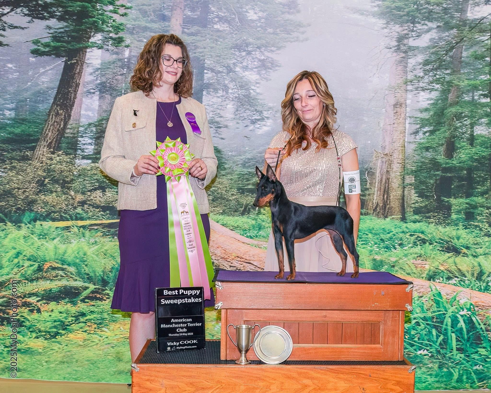 I got into breeding because of my mother and grandmother, it is almost all I knew growing up and I loved it. Most of all I had fallen in love with Manchester Terriers and would do anything for the breed. I love being part of the growth of this breed.