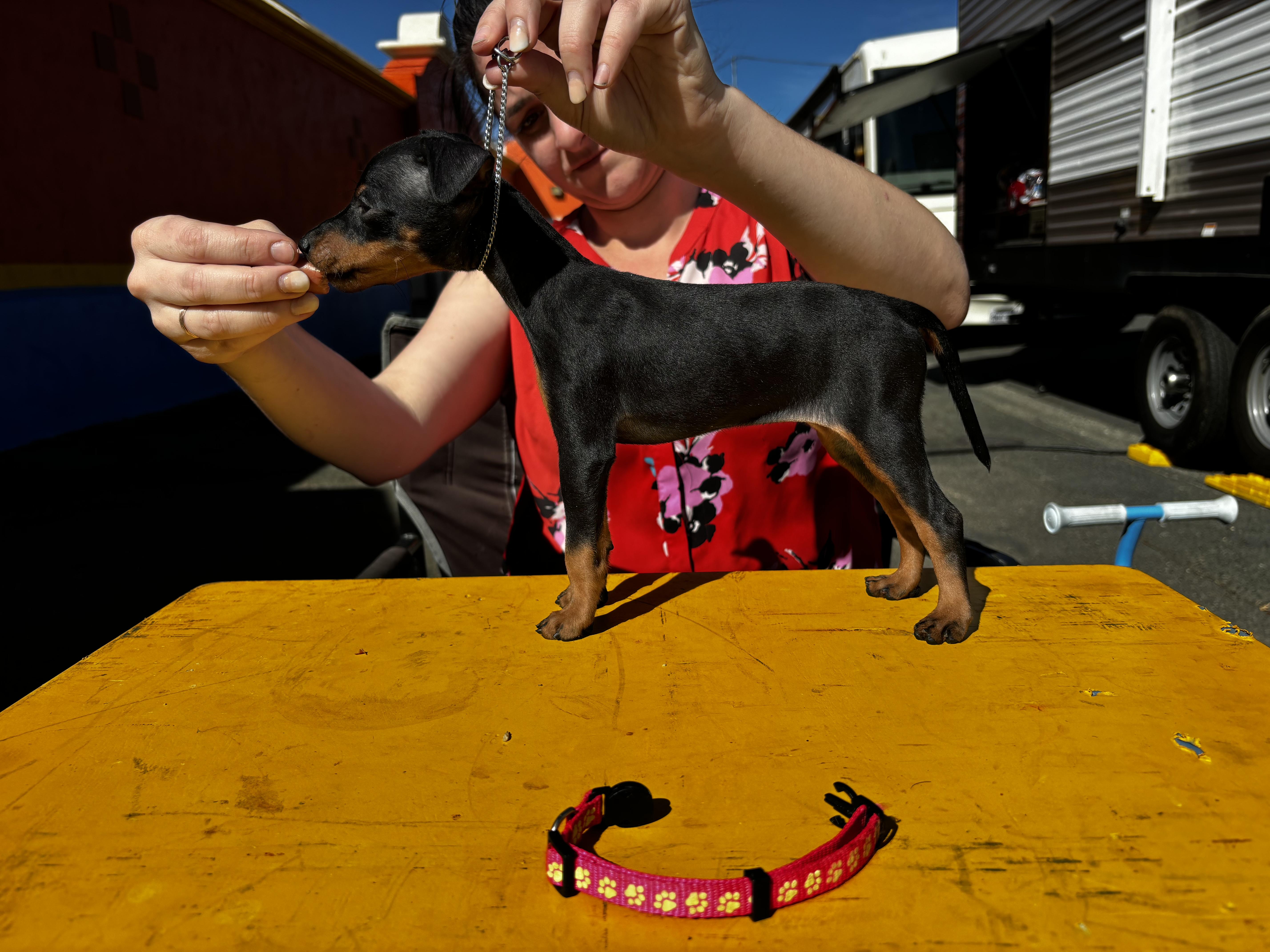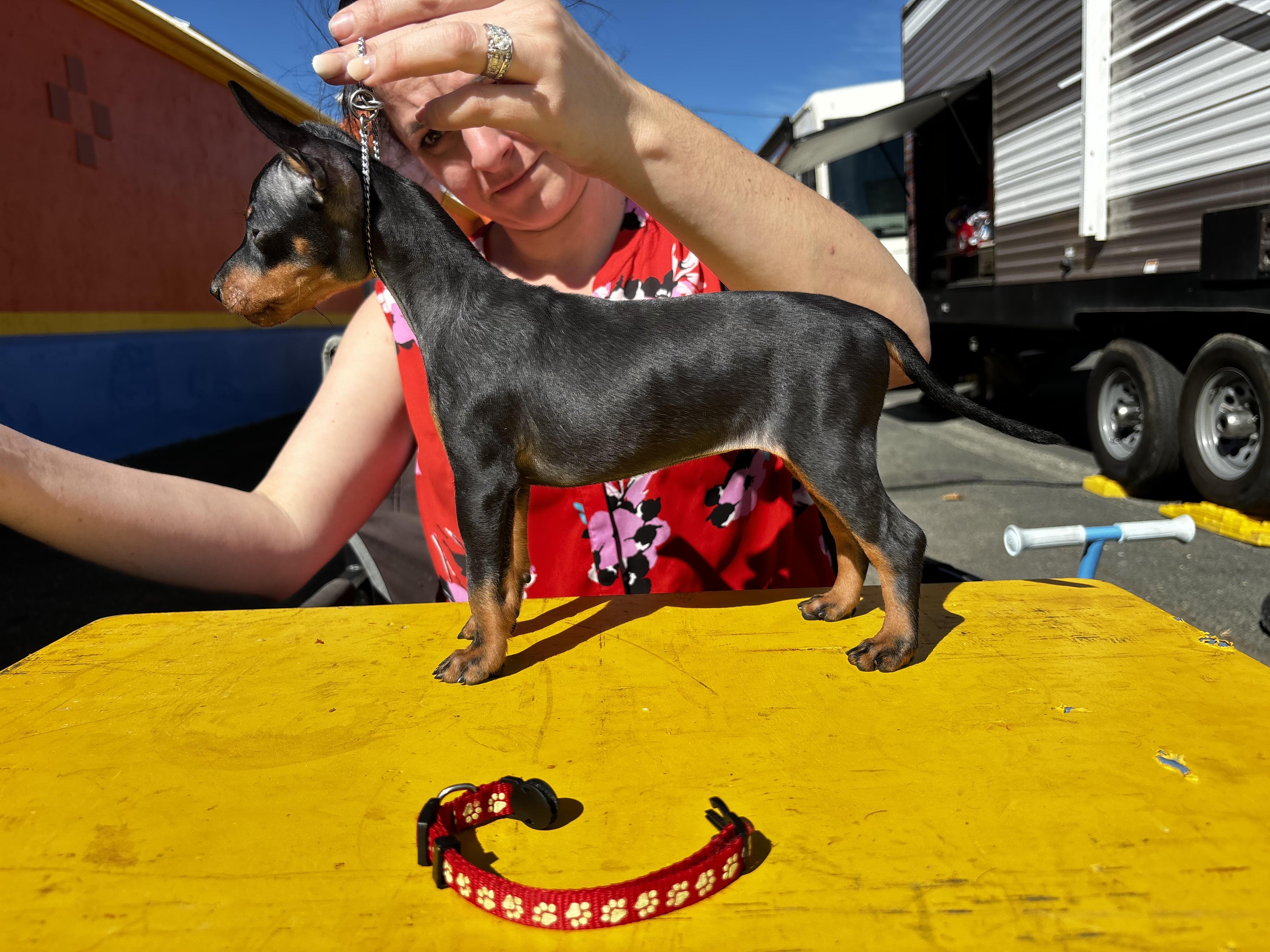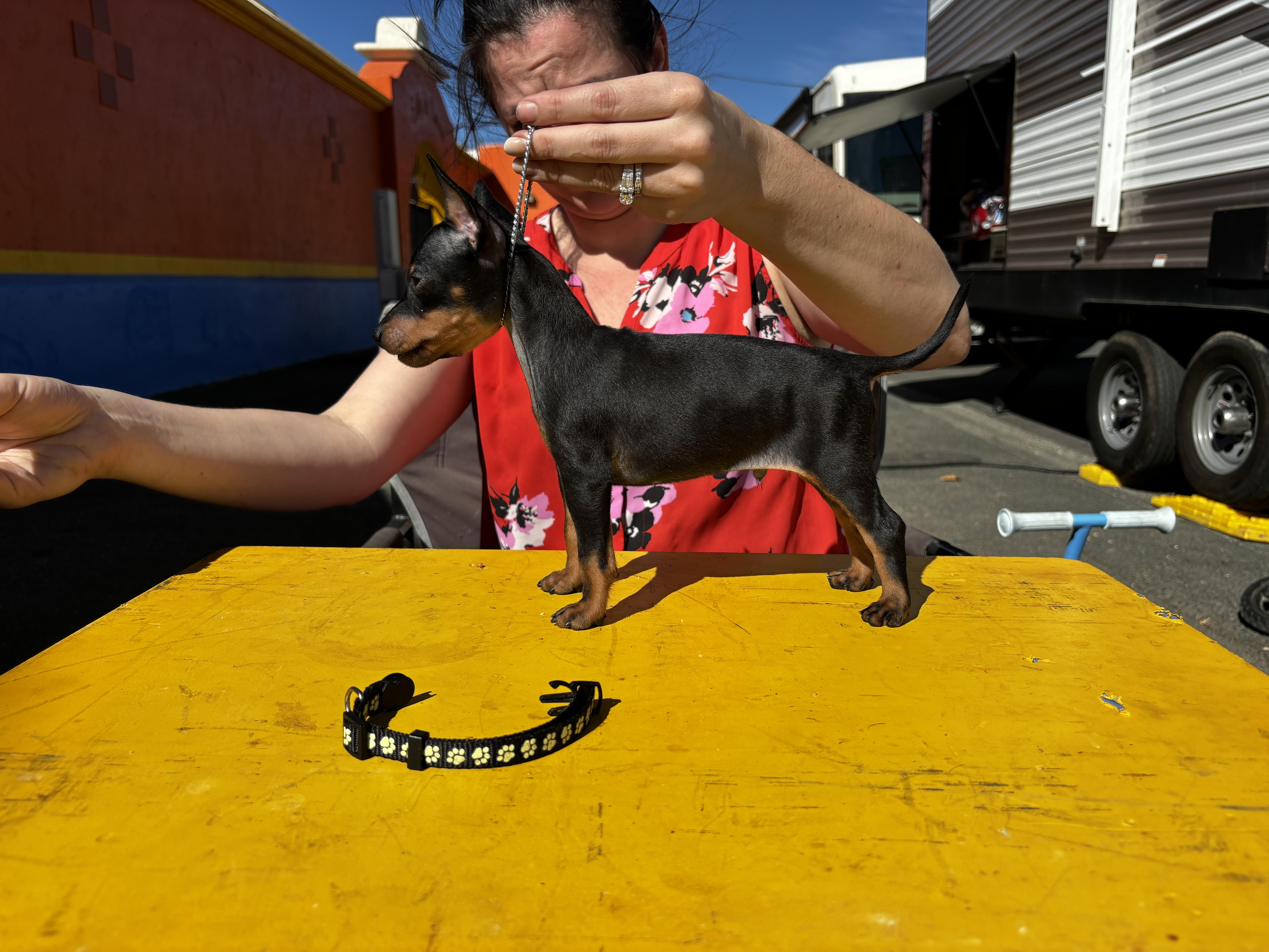 I got into breeding because of my mother and grandmother, it is almost all I knew growing up and I loved it. Most of all I had fallen in love with Manchester Terriers and would do anything for the breed. I love being part of the growth of this breed.