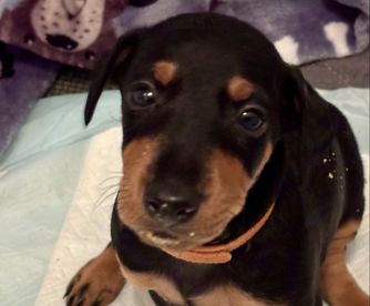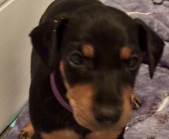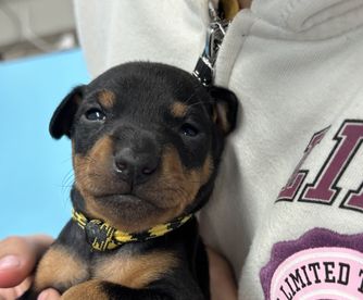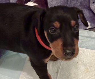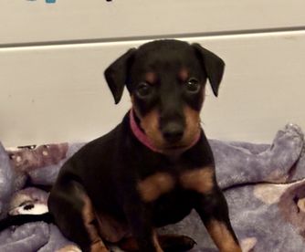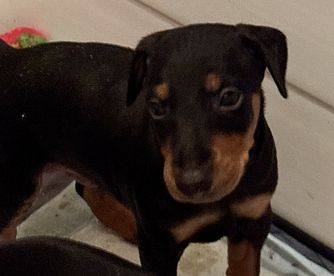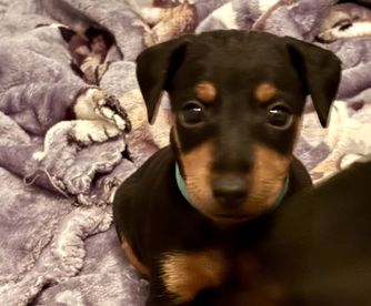 Manchester Terrier puppies are black and tan. Colors will vary depending on the parent dogs.