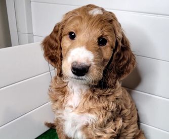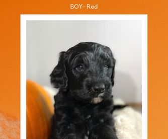 Our Labradoodle puppies include red, apricot, cream, chalk, and black. Goldendoodle puppies include apricot, red, black, phantom, and parti. Colors will vary depending on the parent dogs.