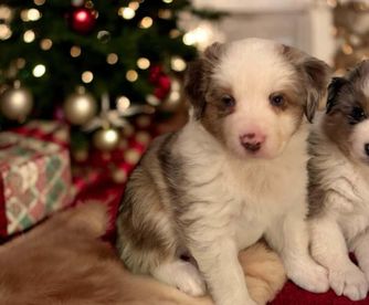 Our Australian Shepherd puppies include red merle, blue merle, black tri-color, and red tri-color. Miniature American Shepherd puppies include red tri-color, black tri, red merle, and blue merle. Colors will vary depending on the parent dogs.