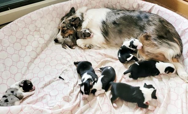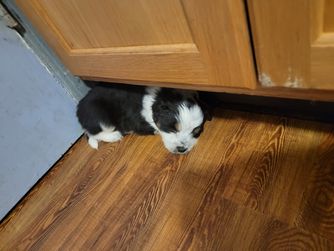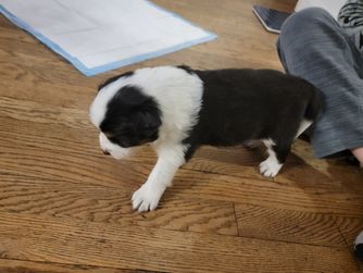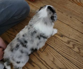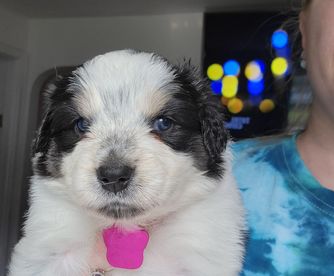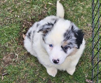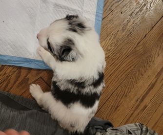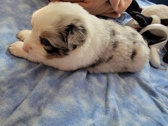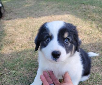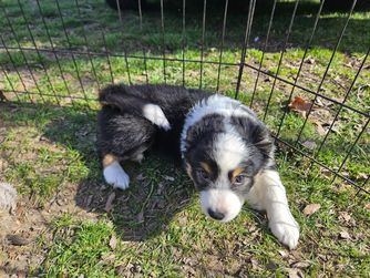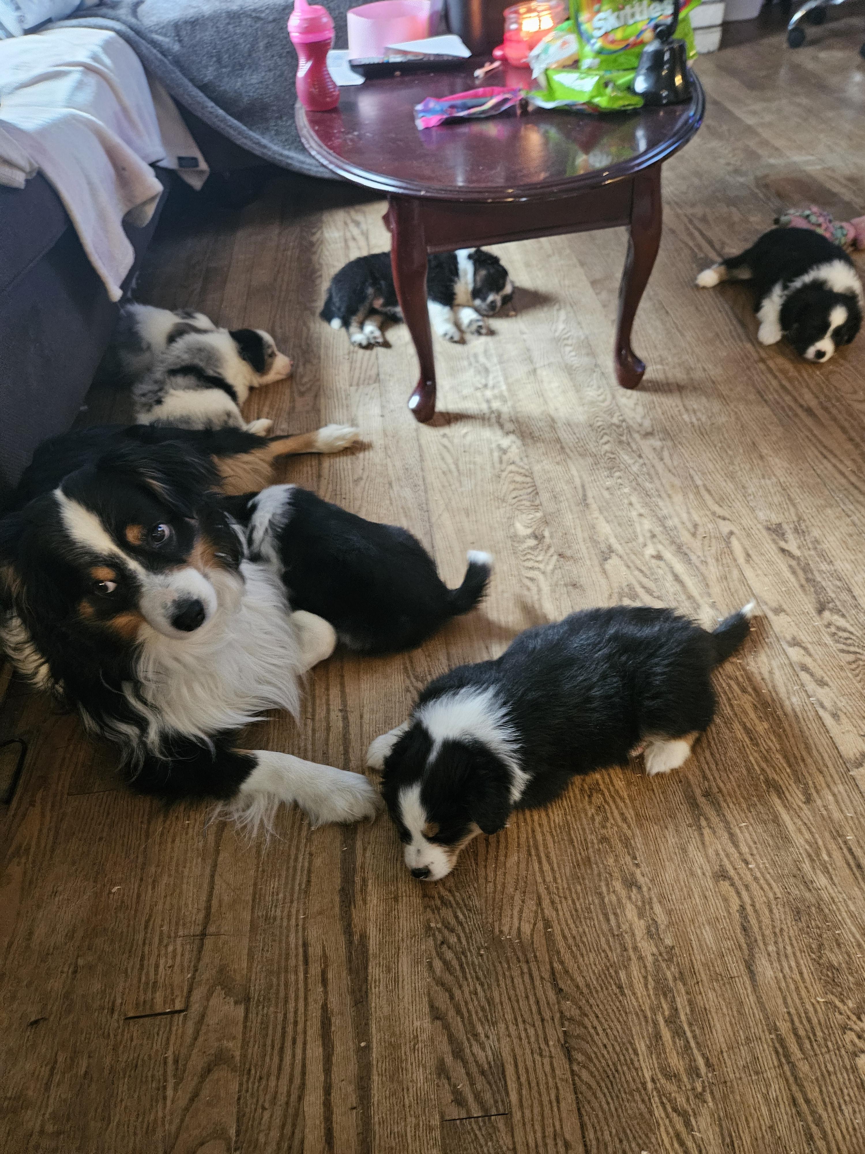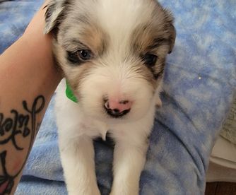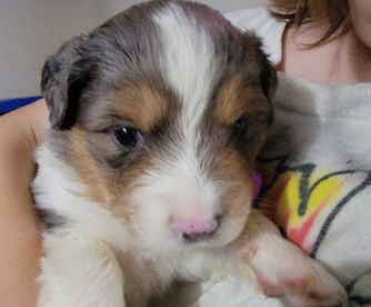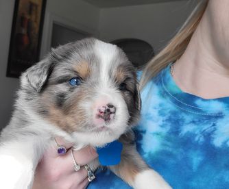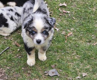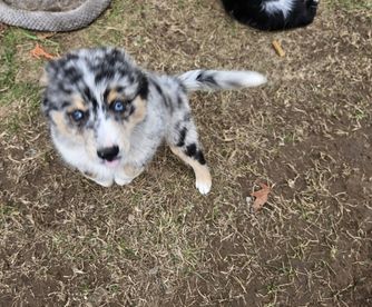 Our puppies include blue merle and black tri. Colors will vary depending on the parent dogs.
