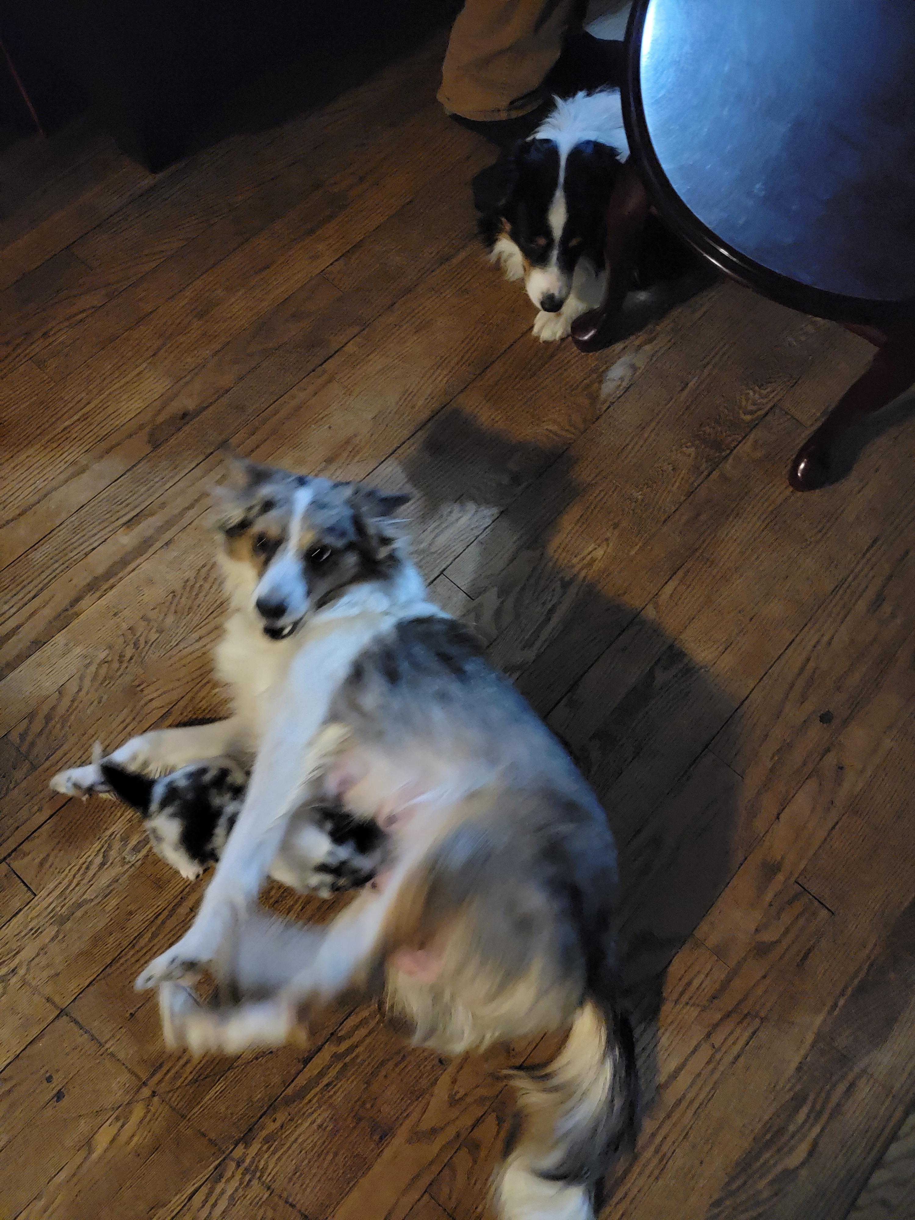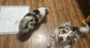 Blue Merle female with copper, one half blue eye one brown, She is the more dominate one in the house, she is very food driven and LOVES to please, she is the most loyal dog I've ever seen❣️🐾🥰 She was the 1st dog we ever got and then got bear almost a year later from Florida, both at 8 weeks old and have had them since❣️🐾🥰 This is their last litter as mamma is getting fixed next month so these are the last of our Bear & Aussie mix, they throw the most beautiful babies and so well mannered and great temperaments and i keep all their tails, mom has hers but dads got docked before I had a say sadly❣️🐾🥰 She has been a pro breeder and now she is retiring and she will spend her remaining years here with us❣️🐾🥰