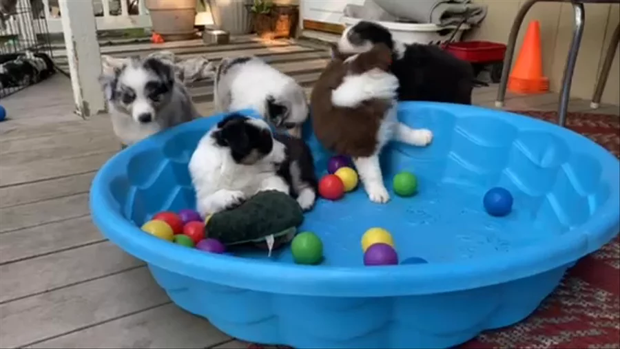 Our Miniature Australian Shepherd puppies include blue merle, red merle, red, and black. Australian Shepherd puppies include red merle, blue merle, red, black tri-color, and red tri-color. Colors will vary depending on the parent dogs.