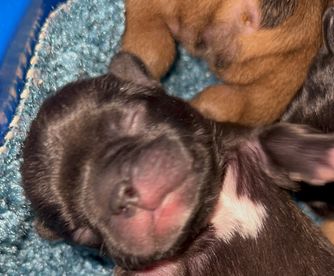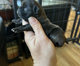 Pudding is a female French Bulldog. Carefully selected as a great representative of her breed, Deanna decided to make her part of their program. Deanna has passed Good Dog’s screening process, which involved a review of their breeding practices, environment, and the mental and physical health of their dogs.