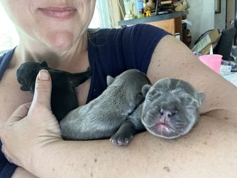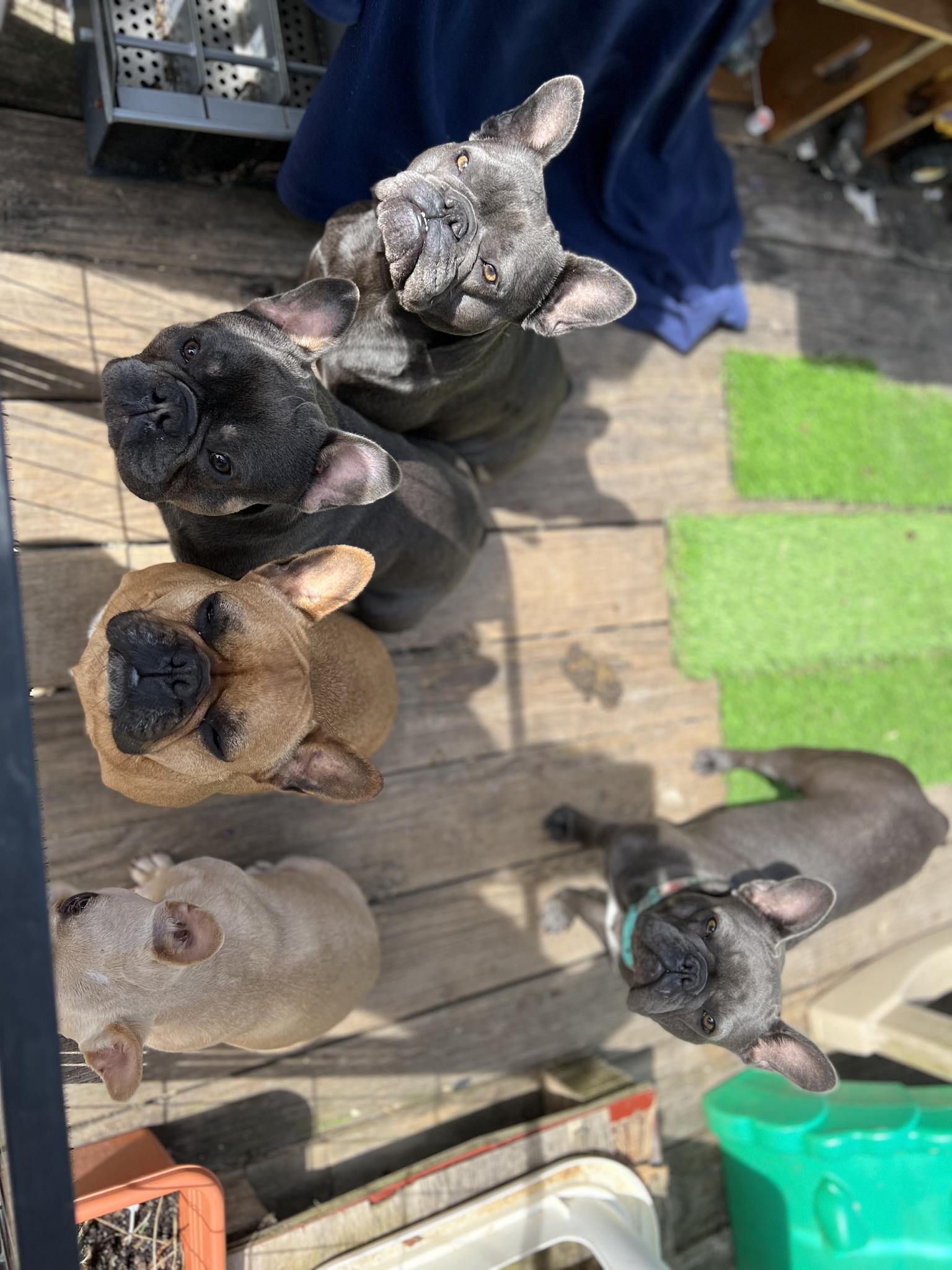Our puppies include brindle, cream, fawn, fawn and white, blue fawn, and blue. Colors will vary depending on the parent dogs.