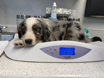 Our puppies include red merle, blue merle, black tri-color, and red tri-color. Colors will vary depending on the parent dogs.
