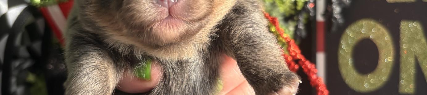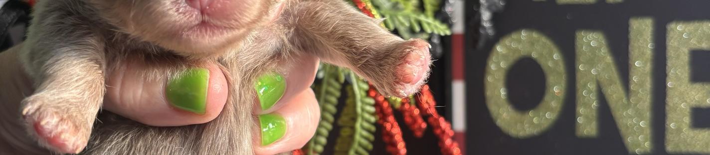 Beautiful blue Merle boy from rain x Titan. He is in his puppy uglies and stunning . 1.5 lbs at 6 mo